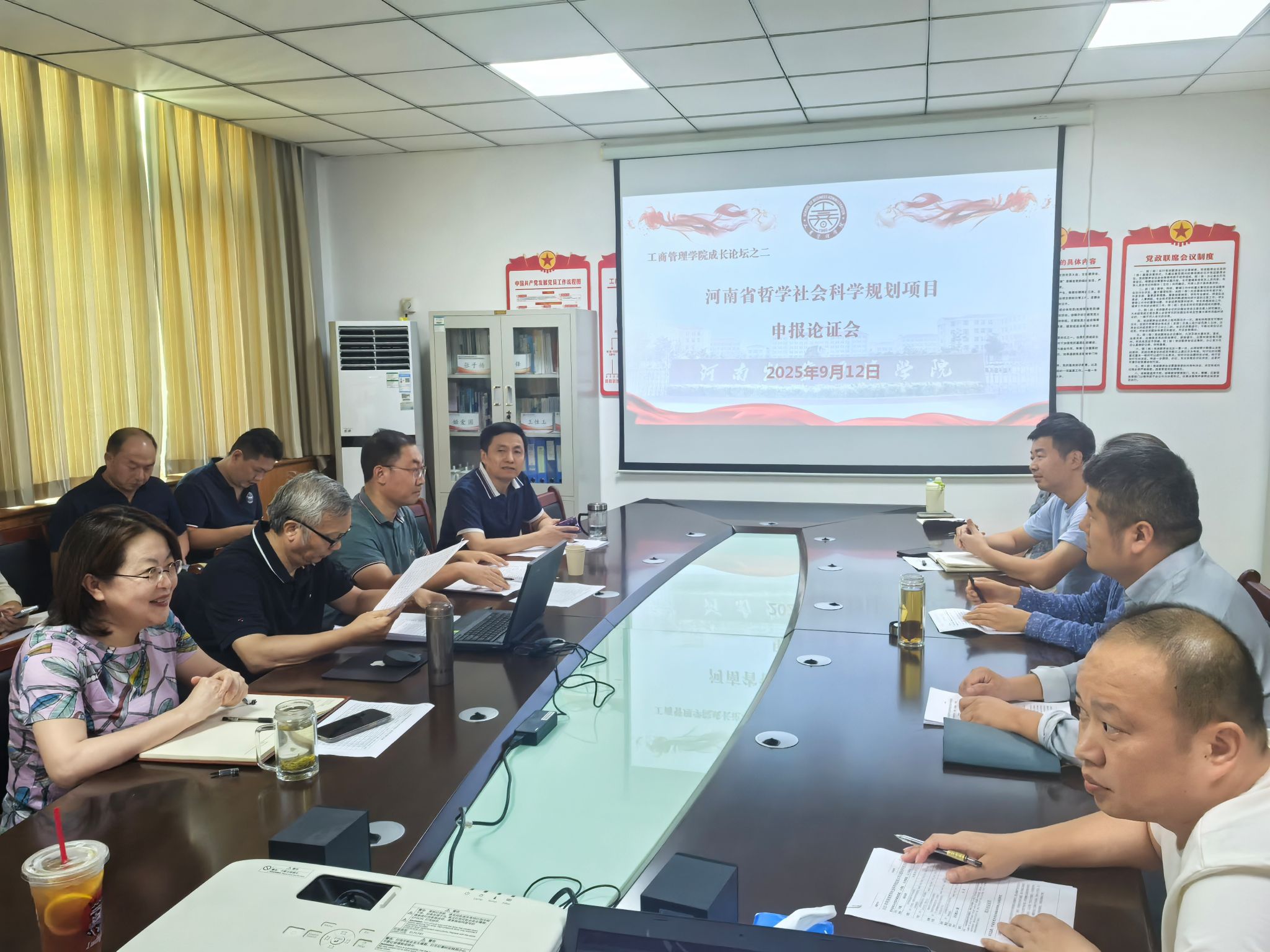 为进一步提升老师们的科研水平,提高省哲学社会科学规划项目申报质量,9月12日下午,365英国上市公司“2024-2025成长论坛”系列活动之二--河南省哲学社会科学规划项目申报论证会在412会议室召开。本次论证会邀请河南大学王性玉教授和河南财经政法大学赵德昭教授作为评审专家,副经理(主持工作)何丽娜、陈先锋,博士、副教授等拟申报项目人员三十余人参加了此次会议,会议由陈先锋主持。