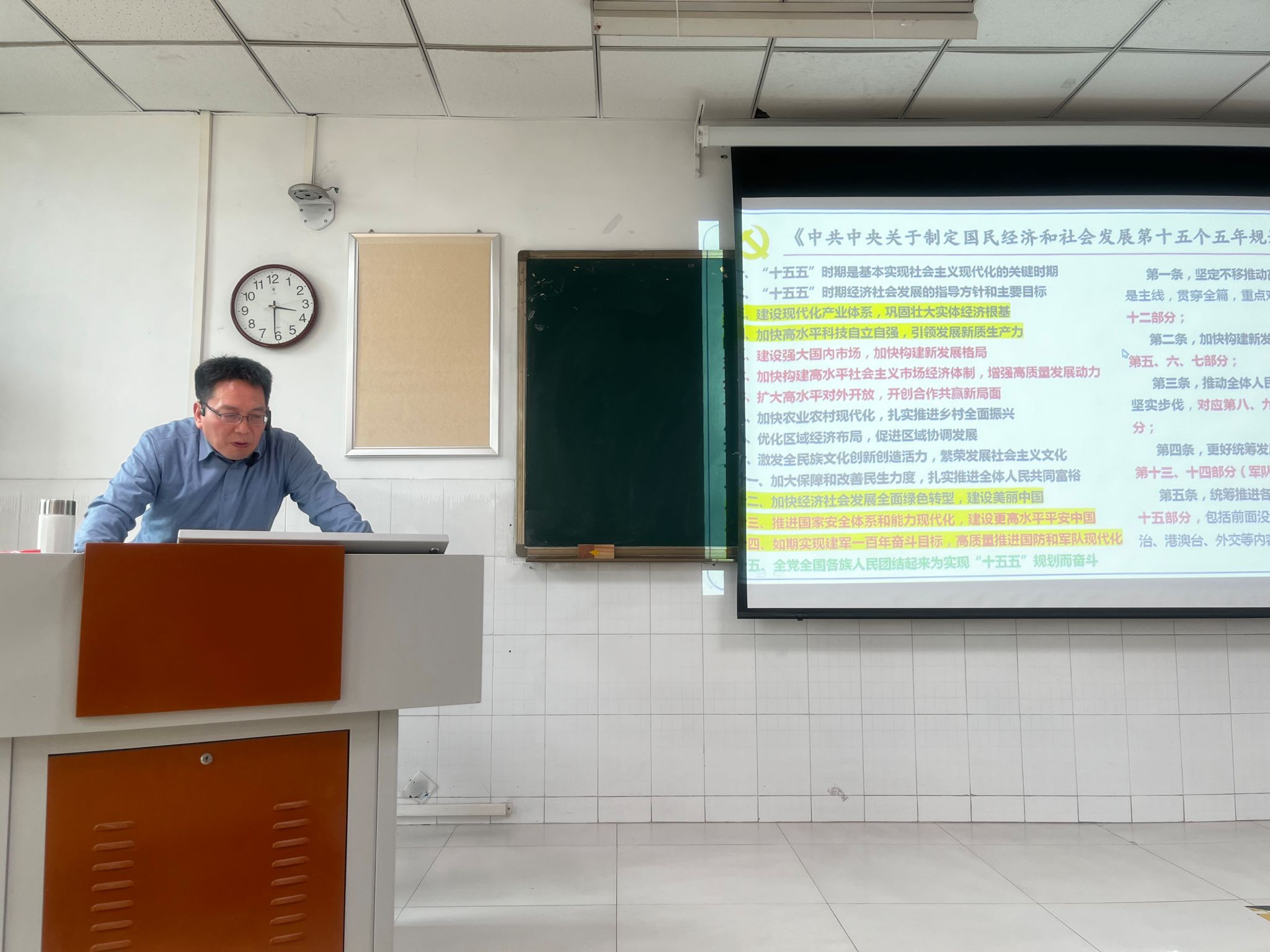 为深入学习贯彻党的二十届四中全会精神,准确把握"十五五"时期发展的战略部署,切实把思想和行动统一到党中央决策部署上来,12月11日下午,公司与经济贸易公司联合举办的党的二十届四中全会精神宣讲会在英才校区W303举行。宣讲会于下午3:00准时开始,特别邀请理论宣讲员、马克思主义公司刘明定教授以"夯实基础 全面发力 奋力开创中国式现代化新局面"为题作专题讲解,公司和经济贸易公司全体教师到会聆听。