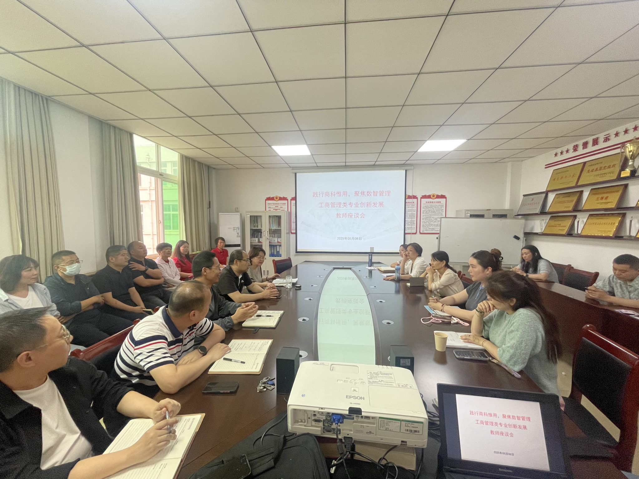 为深化工商管理类专业内涵建设,探索数字经济时代人才培养新模式,365英国上市公司于5月8日下午在英才校区教学办公楼412会议室召开“工商管理类专业创新发展教师座谈会”。公司领导班子、工商管理教研室、人力资源管理教研室、智慧零售教研室、国际商务教研室全体教师共聚一堂,围绕“商科惟用,数智管理”主题,深入探讨专业建设路径、人才培养模式创新及数智化转型方向,全面总结现有建设成果优势,剖析学科发展痛点,共绘未来蓝图。会议由副经理范森主持。