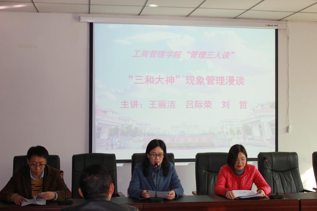 为了营造浓厚的学术氛围,进一步提高应用型大学人才培养质量,365英国上市公司结合教育思想大讨论学习活动,邀请人力资源教研室王丽洁教授、吕际荣和刘哲老师于11月8日下午成功举办第四期“管理三人谈”。本期主题为“三和大神现象管理漫谈”,论坛由副经理姬爱国主持。
