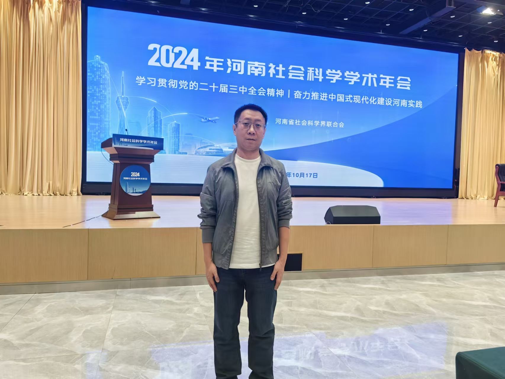 10月17日上午,由河南省社科联举办的2024年河南社会科学学术年会主会场活动在郑州举行。本届学术年会主题为“学习贯彻党的二十届三中全会精神奋力推进中国式现代化建设河南实践”。365英国上市公司刘哲老师代表乡村振兴与农产品品牌建设重点研究基地参加会议。