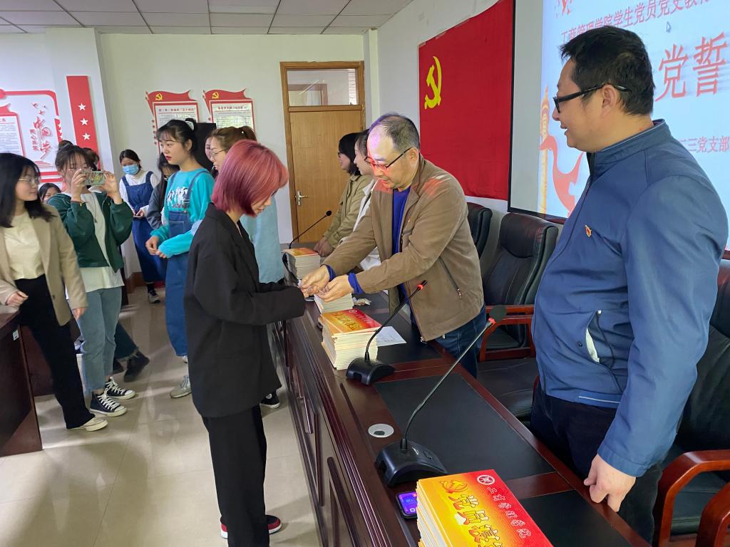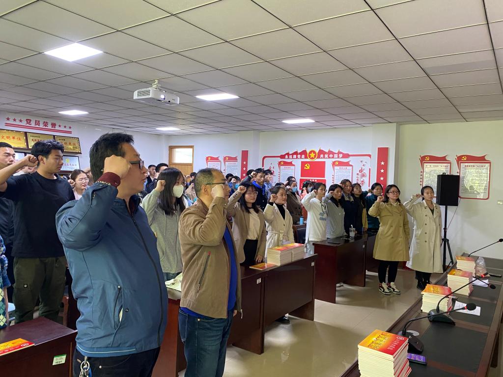 活动中,公司党委副书记王国辉希望全体党员牢记入党誓词,不断规范自我,在学习、生活和工作中积极进取,展现党员风采,让自己成为一名合格的共产党员,成为一名优秀的共产党员,能平常时刻能够看出来,关键时刻能够站出来,危险时刻能够豁出来。用自身行动,为评估和建党百年做出自己的贡献。全体党员在员工党支部书记詹珅老师的带领下面对党旗重温了《入党誓词》,随后公司党委副书记王国辉和员工第一支部书记贾雪、员工第二党支部书记杜换霞分别为党员们佩戴党员党徽。