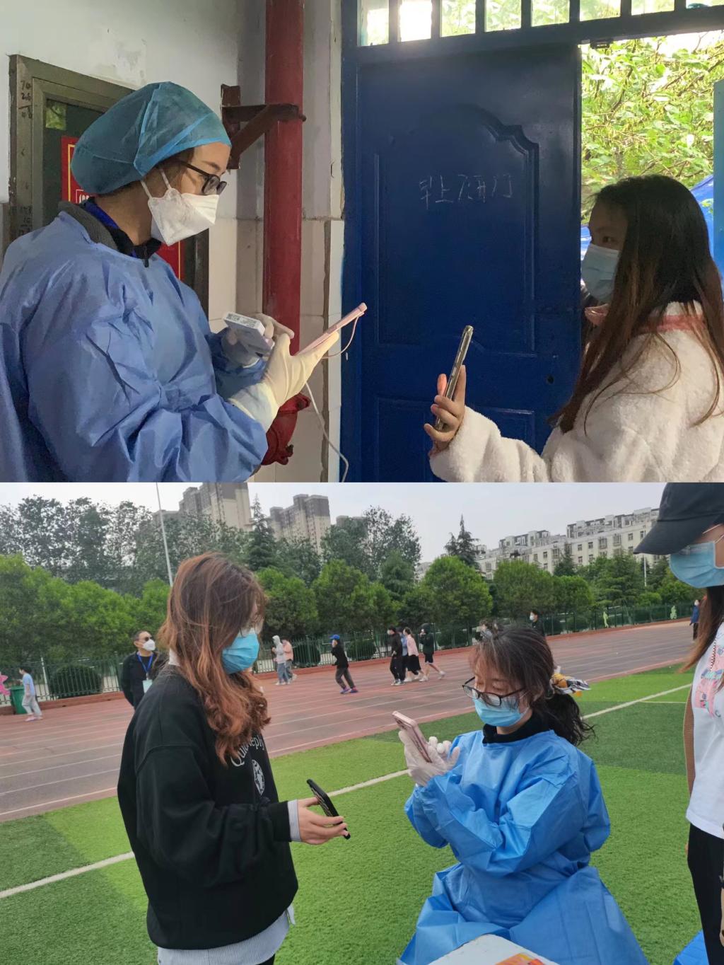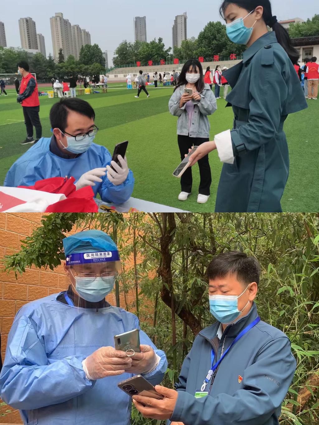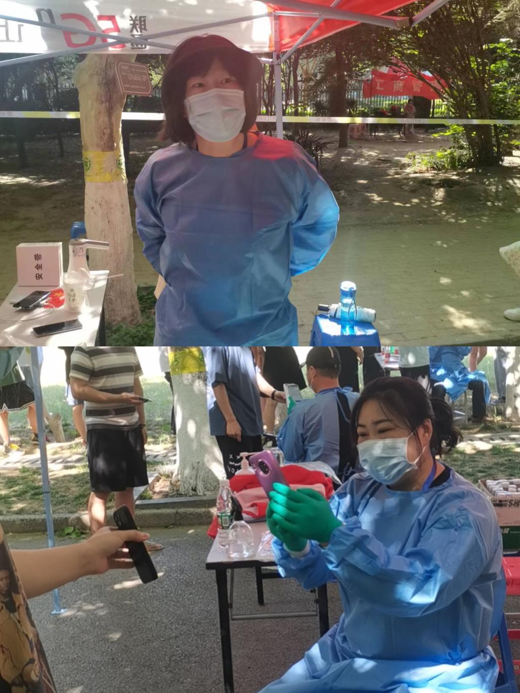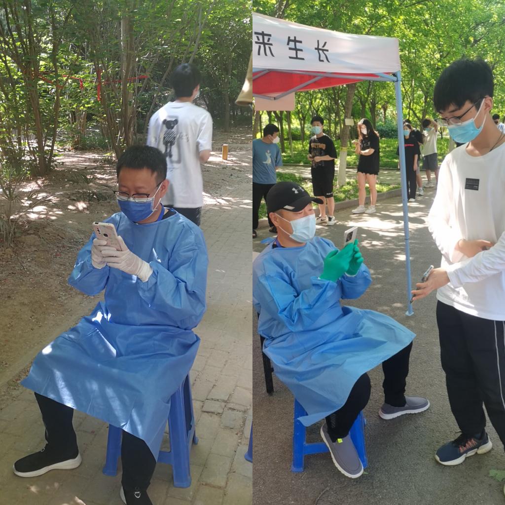5月5日开始,张国锋、李珍、刘哲、王璇、张静、龙江华、兰晶、毋黎明等,数十名住在生活园区的教师党员志愿者先后深入校区内参与员工核酸检测扫码服务。每天一早,就有两名教师党员志愿者由生活园区通往校区的小门进入校区开始核酸检测扫码工作,经过简单的培训并做好自身防护后,他们熟练地拿起手机为排队的员工扫码,认真完成核酸检测前期的录入核对工作,并时刻督促员工们加强自我防护,规范佩戴口罩,保持一定的安全距离。