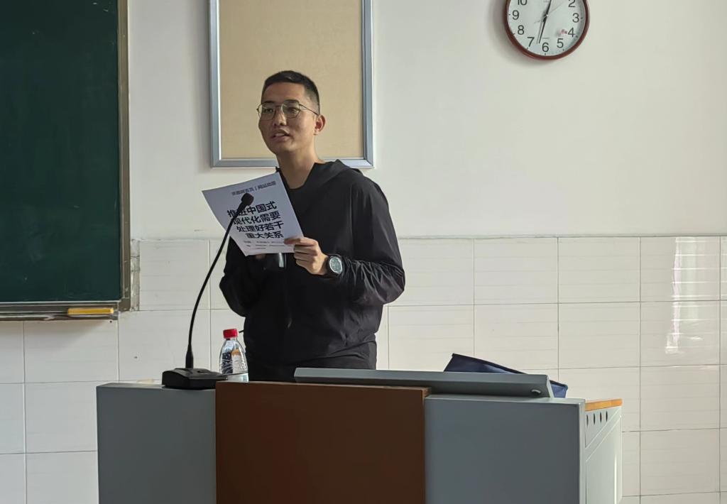 会议伊始,公司员工第三党支部书记付裕以习近平总书记在《求是》杂志上发表的重要文章《推进中国式现代化需要处理好若干重大关系》为引,提出青年员工作为党员所需承担的责任和义务,强调员工党员应持续学习习近平新时代中国特色社会主义思想。接着,付裕从新时代新征程的发展战略方向出发,围绕着习近平总书记《论党的自我革命》重要文章的主要内容号召各级党组织以及广大党员必须保持头脑清醒,居安思危,以伟大的自我革命引导伟大社会革命,以伟大社会革命促进伟大自我革命,确保党在新时代坚持和发展中国特色社会主义的历史进程中始终成为坚强领导核心。最后,付裕通过引出《中国共产党党徽党旗条例》的核心思想,告诫党员应切实担负起维护党徽党旗尊严的政治责任,引导广大党员应该引导群众一同一心向党。