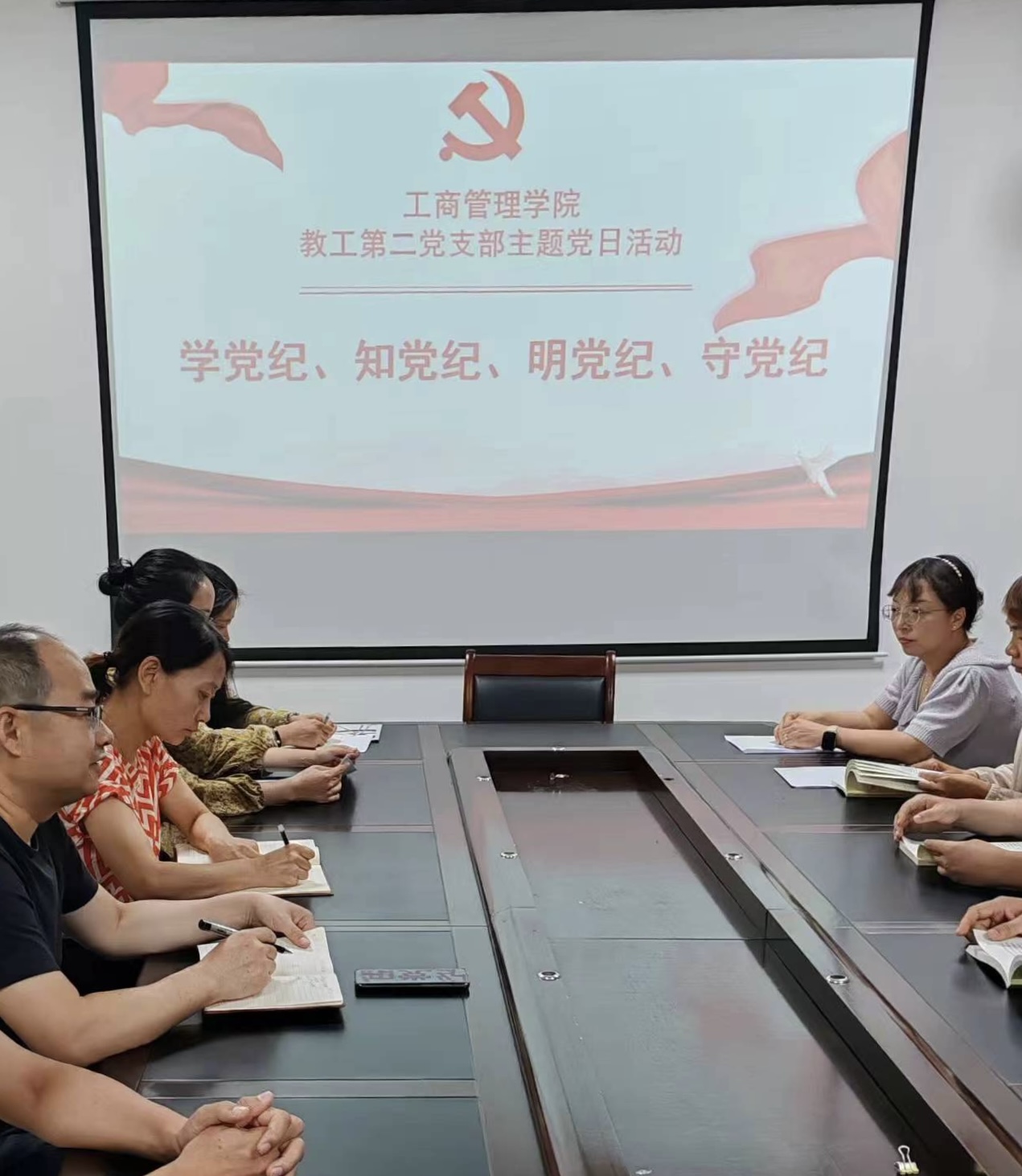 党纪对于党员的要求是严格的,它不仅规定了我们应该做什么,更明确了我们不能做什么。党纪是我们行动的指南,是我们思想的基石。为更好深入学习新修订的《中国共产党纪律处分条例》让支部党员学纪、知纪、明纪、守纪,用党规党纪指导思想和行动,6月27日下午在教学楼413会议室,公司教工第二党支部书记赵趁以“学党纪、知党纪、明党纪、守党纪”为主题为支部党员讲授党课。