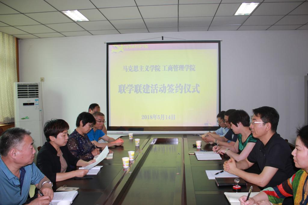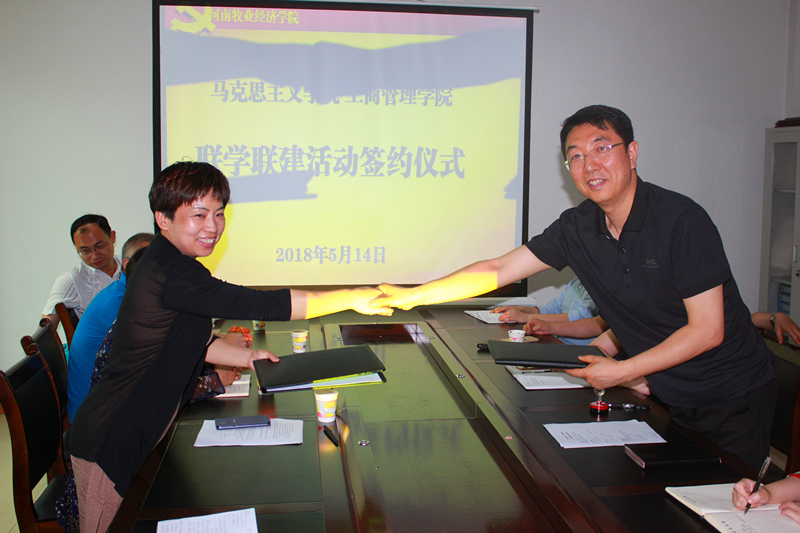 首先,贾江介绍了这次联学联建活动合作协议签署的背景、目的和意义,指出这项活动也得到了校党委书记穆瑞杰和副书记李绍文的充分肯定。邵红梅宣读了协议内容,对联学联建活动的目标、原则、职责措施、具体内容和工作要求做了详细说明。王素云表示新成立的马克思主义公司要学习公司党建工作的先进经验,在联学联建活动中学出特色、学出深度,建出友谊、建出水平。王桂朵希望进一步创新党建工作,把联学联建工作做实,搭建两个公司教师交流平台,实现资源共享、优势互补,共同做好老员工思想政治教育工作,为老员工的健康成长保驾护航。最后,邵红梅和贾江在联学联建协议书上交换签字,双方合影留念。