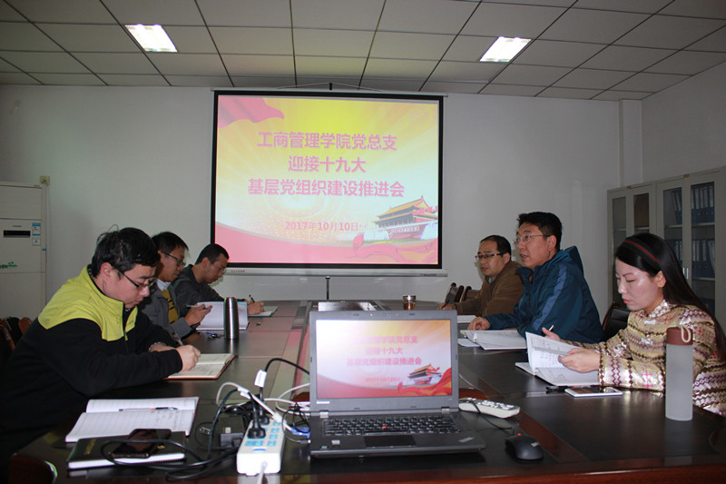 为迎接党的十九大胜利召开,扎实推进工商管理公司基层党组织建设,2017年10月10日下午,公司党总支在公司会议室召开专门会议,公司党总支委员、各党支部委员以及员工党员代表参加会议,会议由公司党总支书记贾江主持。