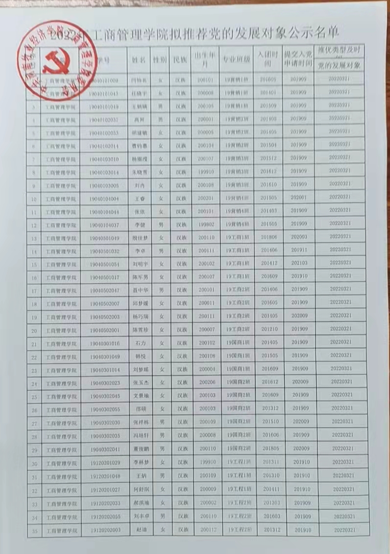 公司党委关于确定闫怡名等105名同志为发展对象的公示