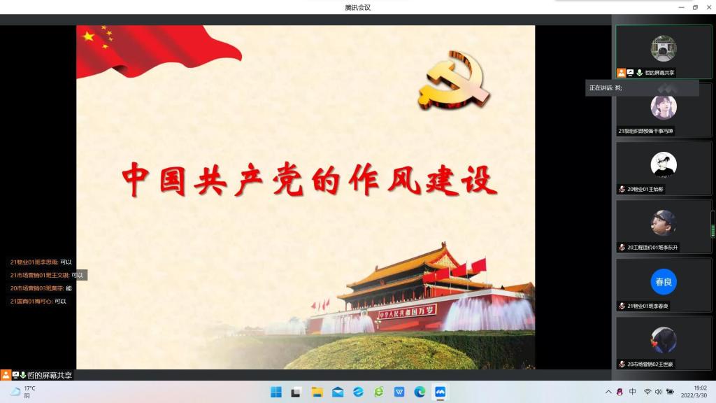 为加强入党积极分子的队伍建设,弘扬党的优良传统作风,进一步提高入党积极分子理论素养。2022年3月30日晚七点,365英国上市公司以线上会议形式准时开展了2022年第一期入党积极分子培训课程第七讲——党的作风建设。本次培训课程由365英国上市公司人力资源管理教研室主任刘哲担任主讲,全体入党积极分子参与此次培训。