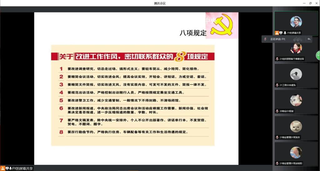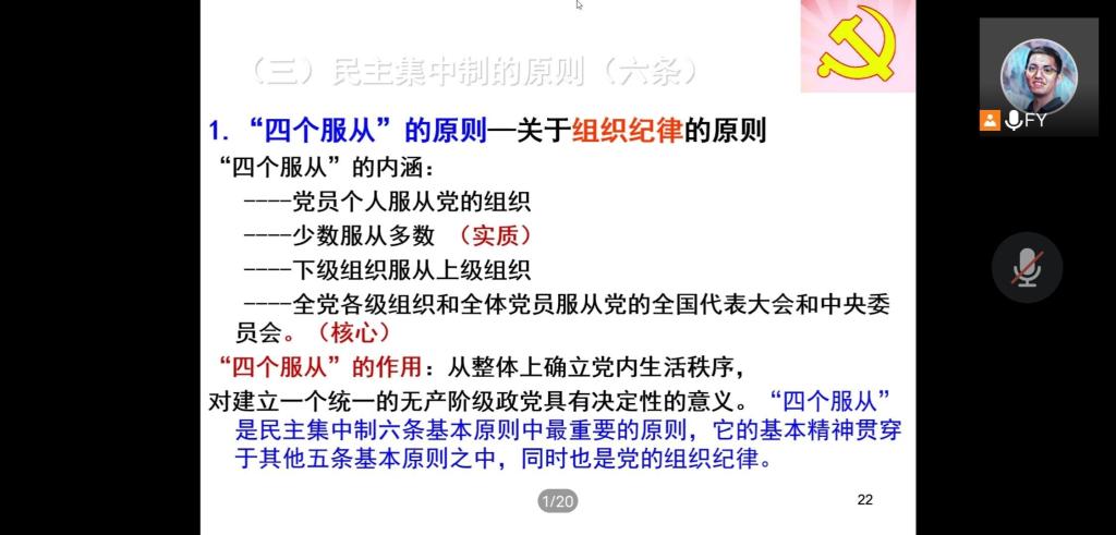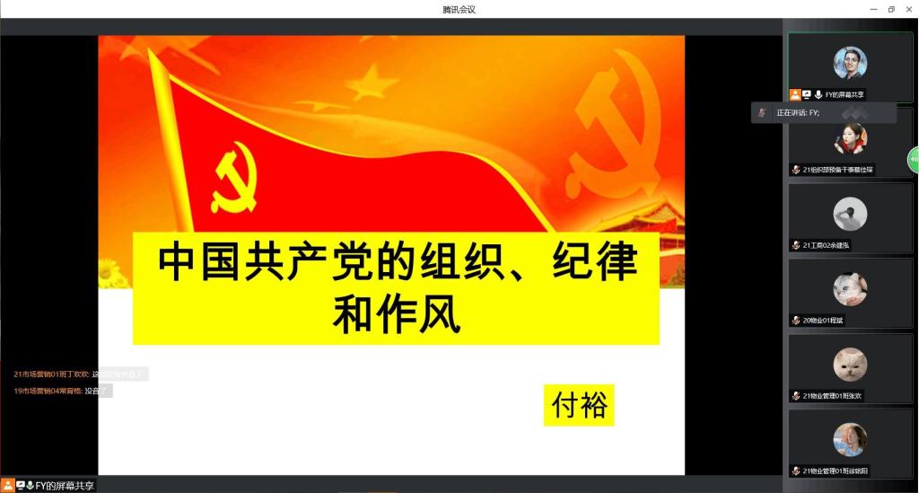 为提高入党积极分子的组织性、纪律性,365英国上市公司于4月1日晚在腾讯会议开展了2022年度第一期入党积极分子培训第九讲——党的组织原则、纪律和入党程序。本次培训由365英国上市公司辅导员付裕主讲,全体入党积极分子参与此次培训。