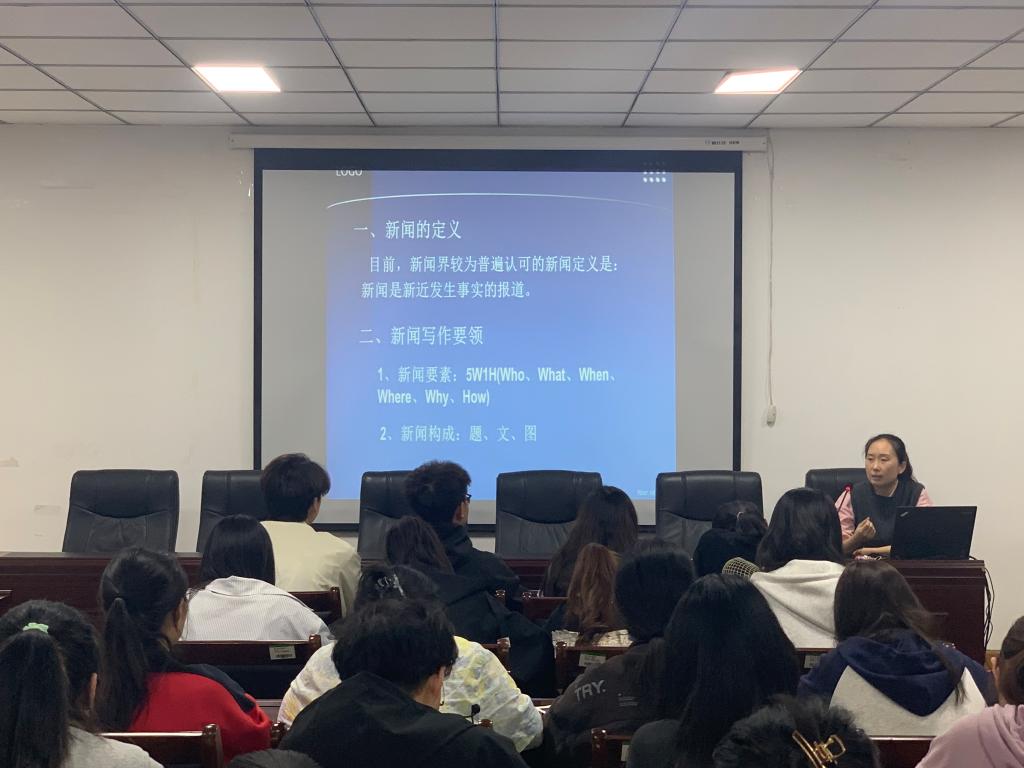 讲座伊始,贾雪讲述了新闻写作的四个要点:标题、导语、内容和结语,然后就这四个方面展开详细讲述,其中结合实例着重强调了新闻稿撰写的注意事项。随后,她以具体的照片为例,向同学们讲解了这些照片在构图、色彩、主题、光线等方面的优劣,让同学们对照片的鉴赏及拍摄照片的技巧有更深的理解。最后,她结合学员现场拍摄的图片展开具体指导,并与在场学员积极互动。