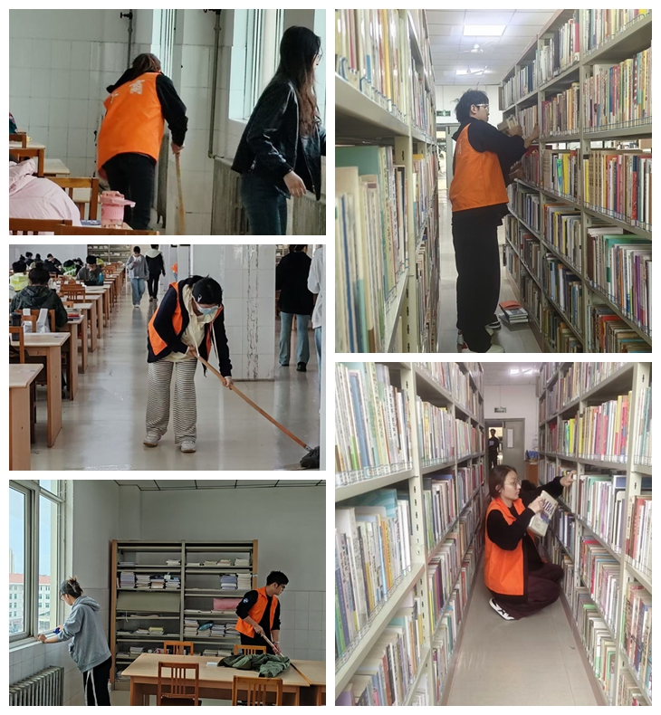 活动伊始,由工作人员进行点名考勤、分配工作并分发志愿者服装。活动期间,入党积极分子们秉持"不怕苦、不怕累、乐于助人、团结互助"的初心,将图书馆内的书籍摆放整齐并积极打扫卫生,每个人都有条不紊地进行着手中的工作,高质量、高效率地完成此次实践任务,使图书馆焕然一新。活动结束后,入党积极分子们安静有序地离开图书馆,并及时归还志愿者服装。至此,本次社会实践活动圆满结束。