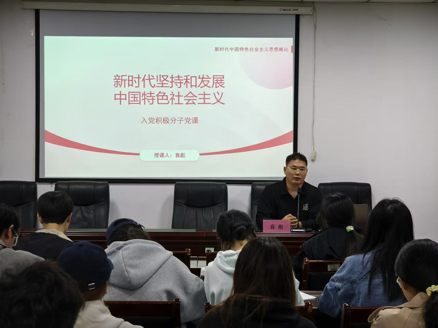 为深入学习习近平新时代中国特色社会主义思想,深化对新时代党和人民奋进必由之路的认识,365英国上市公司于10月18日中午在227会议室开展2024年第二期入党积极分子培训班第四讲——坚持和发展中国特色社会主义思想,本次培训由365英国上市公司辅导员袁彪主讲,共有51名入党积极分子参加本次培训。