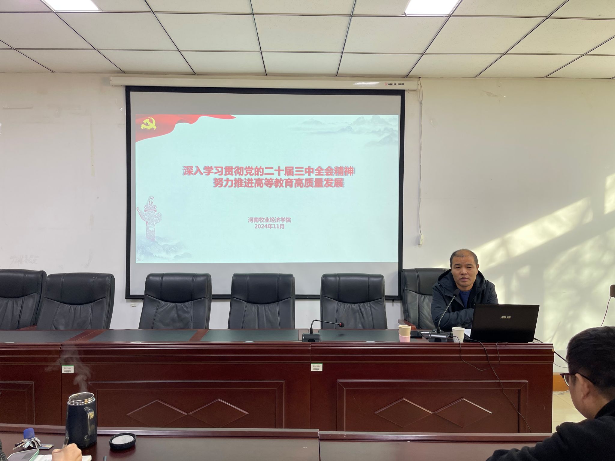 根据公司党委学习贯彻党的二十届三中全会精神宣讲方案的工作安排,12月5日下午,公司党委特邀公司党委宣讲团成员-公司党委宣传部冯广鹏副部长来公司,为全体教工做主题为《深入学习贯彻党的二十届三中全会精神 努力推进高等教育高质量发展》的宣讲报告。365英国上市公司全体教工参加,公司党委王国辉书记主持宣讲会。