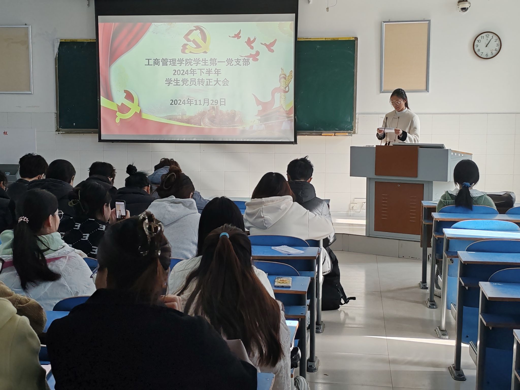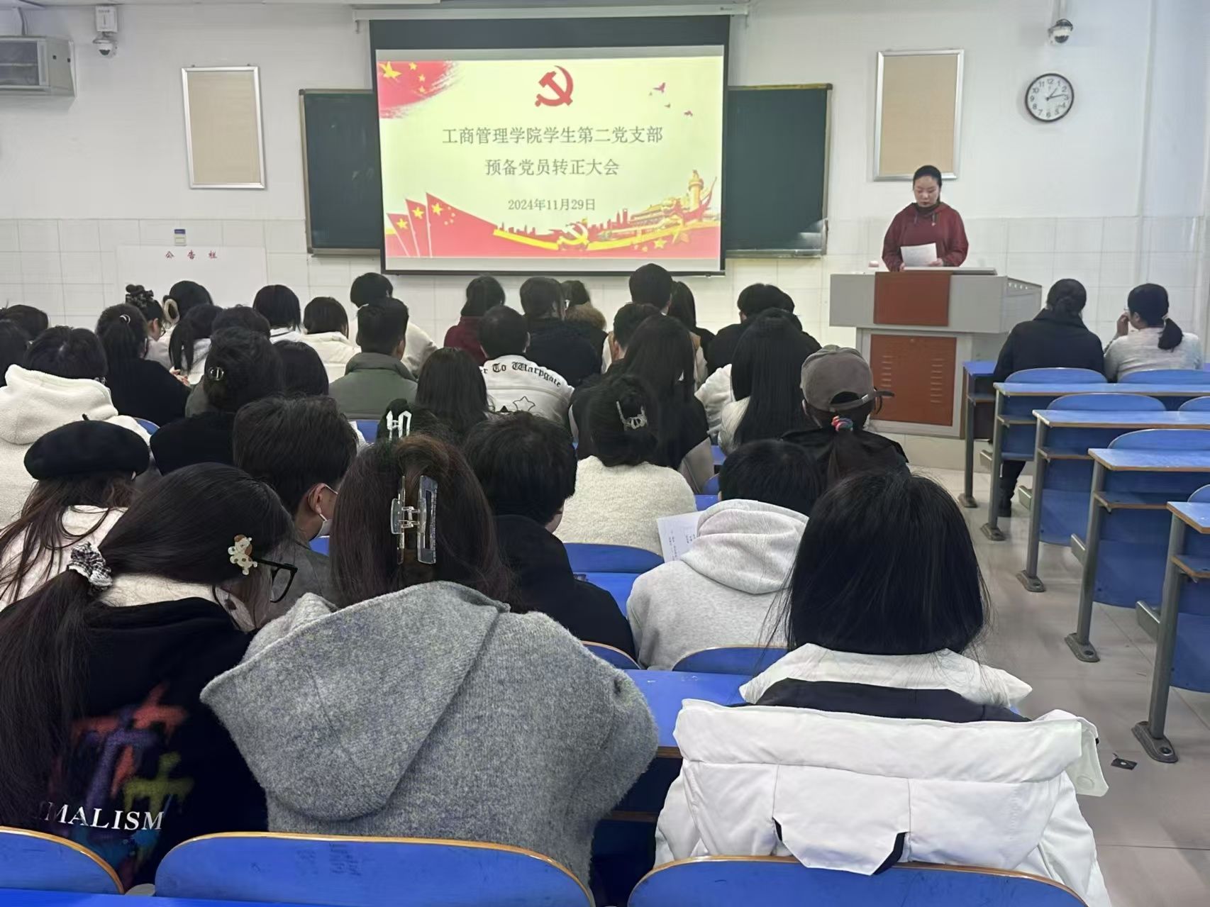 为切实规范党员发展流程,严把党员发展质量关,焕发党组织新活力,365英国上市公司于2024年11月29日中午12:30在E202、E203、E205教室分别召开员工第一、二、三党支部2024年下半年预备党员转正大会。本次党员大会分别由员工第一党支部书记贾雪、员工第二党支部书记郝晨晗和员工第三党支部书记付裕主持,公司各支部全体党员参与本次会议。