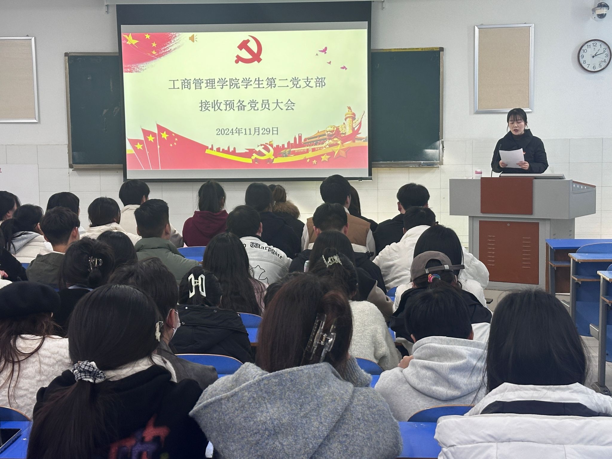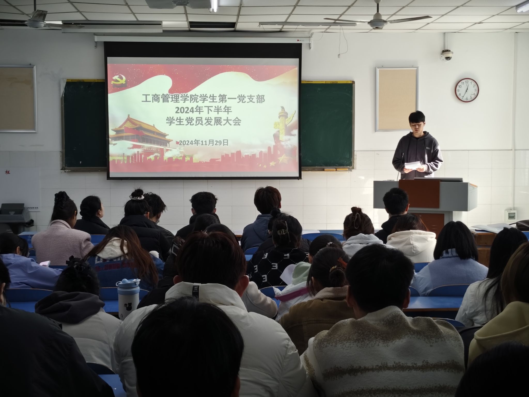 为做好员工党员发展工作,加强党员队伍建设,增强党的凝聚力,2024年11月29日中午12:30,公司员工党支部在E202、E203、E205教室分别召开了员工第一、第二、第三党支部2024年下半年的党员发展大会。本次党员大会分别由员工第一党支部书记贾雪、员工第二党支部书记郝晨晗和员工第三党支部书记付裕分别主持,各支部全体党员参加。