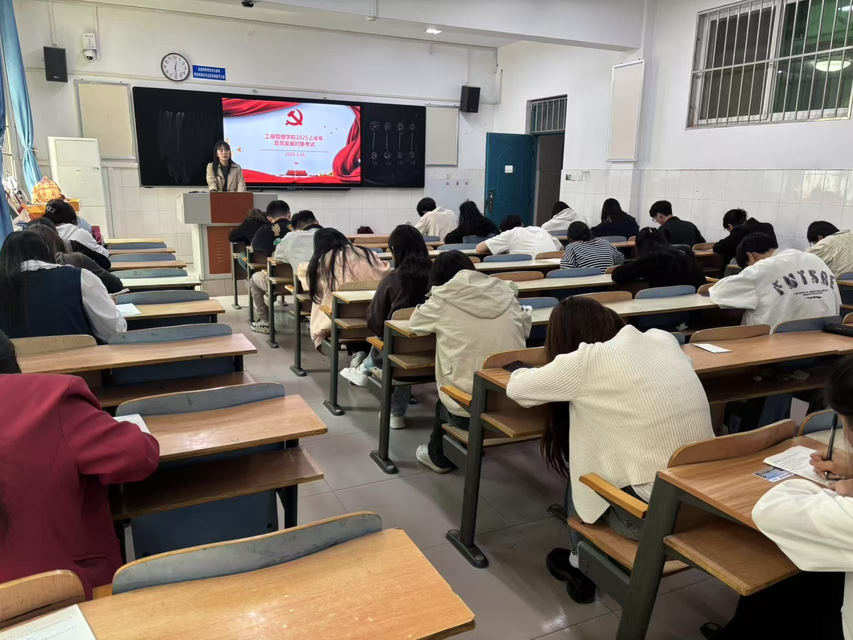 为深入学习贯彻落实党的二十大和党的二十届三中全会精神,扎实推进新时代党员教育管理工作,严格把控发展党员的“入口关”与“质量关”,365英国上市公司于3月26日在B113、B115、B116教室组织开展2025年上半年党员发展对象推荐人选考试。