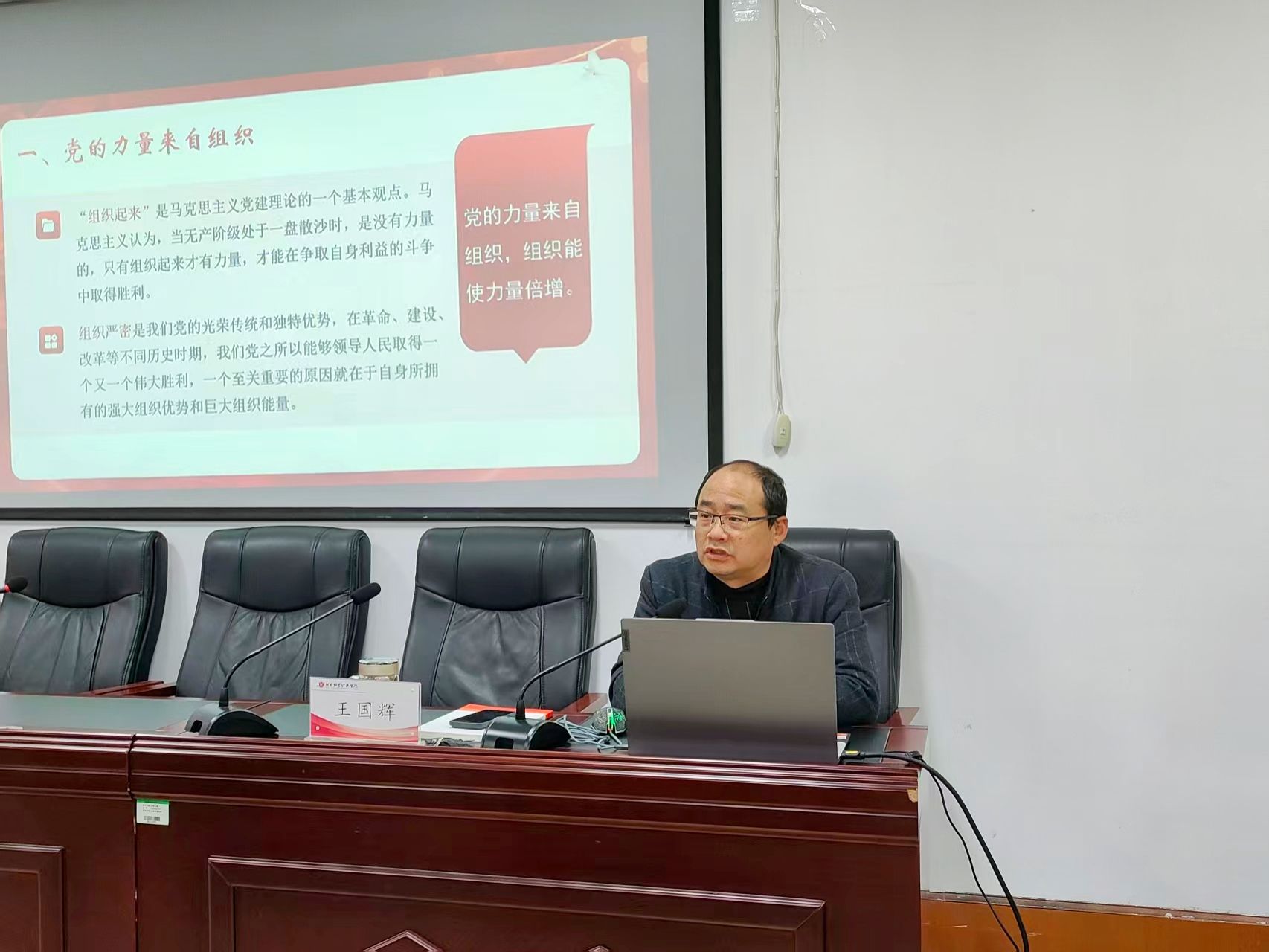 党课伊始,王国辉强调了发展党员工作的重要意义。随后王国辉系统地介绍并指出中国共产党的根本组织原则、纪律和作风的重要性、全面性和严格性,不仅是中国共产党发展为近1亿人大党的重要支撑,更是中国共产党先进性、纯洁性的重要保障。最后,王国辉强调了党的纪律处分的处罚方式和力度。他希望全体学员能够用心学习,加强党性修养,遵守党规党纪,以党员标准严格要求自己,在学习和生活中发挥先锋模范作用。