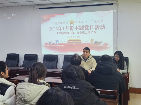 两位党支部书记王金星、赵书勤同志依次领学了1月份主题党日活动材料:习近平总书记在《求是》杂志发表的重要文章《学习好贯彻好党的二十届四中全会精神》、习近平总书记在中共中央政治局民主生活会上的重要讲话精神、中央经济工作会议精神和《二〇二六年新年贺词》。通过学习,全体党员进一步深刻领悟了党的理论体系的时代内涵和实践要求,增强了贯彻落实的政治自觉、思想自觉和行动自觉,纷纷表示要将学习成果转化为推动工作的强大动力和实际能力,坚守立德树人初心,担当为党育人、为国育才使命。