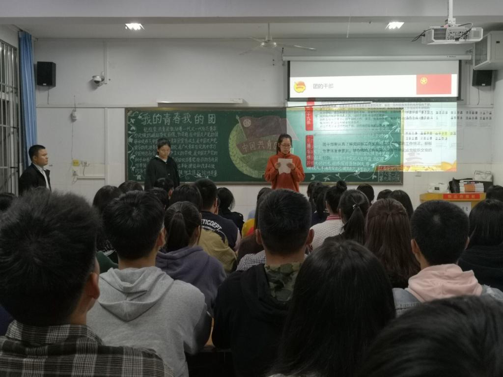 团课伊始,各班团支书首先向大家详细讲述了青春与共青团的关系,青春绚丽多彩,青春短暂有限,作为新时代青年,应在有限的青春里,为团做贡献,一心向团,一心为团。接着,同学们纷纷上台发表自己对本次团课主题的理解,阐述青春与团的关系。随后,团支书组织同学们通过答辩,问答,演讲等活动形式积极互动,进一步加深了同学们对青春与团的理解,共青团是党的后备军,新一代青年是党的希望,应让青春之花在共青团中绽放。最后,团支书带领同学们重温入团誓词,在同学们高昂的宣誓声中,本次团课圆满结束。
