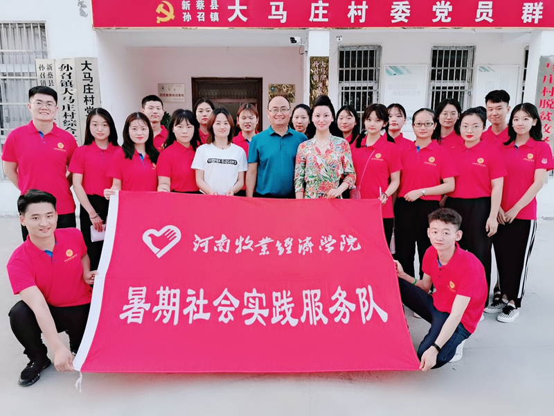 | 公司继续教育公司党总支书记、新蔡县大马庄村驻村第一书记刘建伟与暑期社会实践服务队师生合照 |