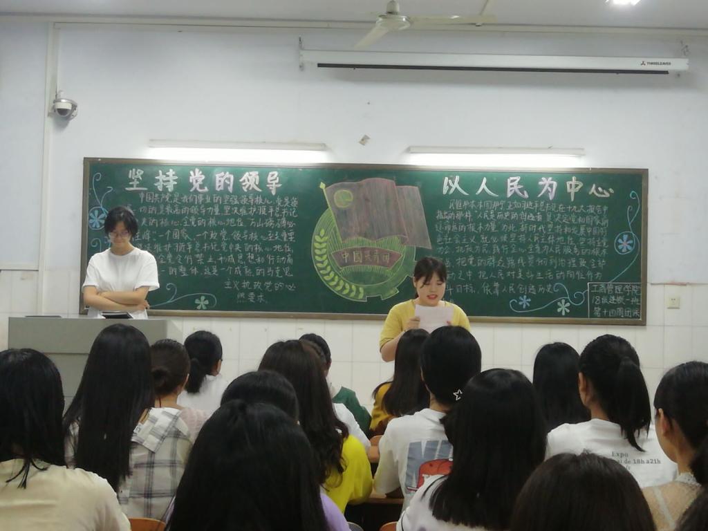 团课上,各班团支书带领同学们共同学习了《习近平新时代中国特色社会主义思想三十讲》系列团课中的主体论知识,同学们通过学习了解了坚持党的领导与坚持以人民为中心的一致性。各班级通过演讲、观看视频等丰富多样的形式学习了习近平总书记一系列重要讲话精神。同学们深切体会到无论是在残酷的战争岁月,还是在和平的建设时期,亦或是在改革开放的年代,中国共产党人正是坚守着以人民为中心的宗旨,才获得了源源不断的力量源泉,才赢得了人民群众的衷心拥护和支持。大家纷纷表示作为党的后备军更应该顽强拼搏,积极为实现中华民族伟大复兴的“中国梦”贡献自己的力量!