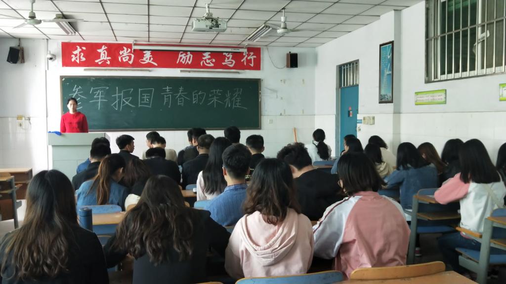 为鼓励更多有志学子积极参军入伍,保家卫国。4月28日晚,公司召开了“征兵入伍宣传”主题班会活动。17级,18级共800余人参加。