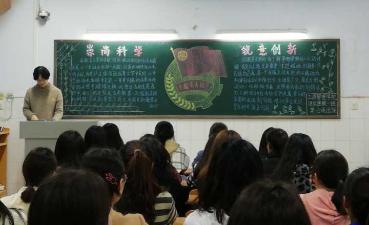 团课上,各班团支书组织同学们一起认真学习科学创新精神。通过演讲,发散思维式辩论等形式,使同学们深入到“科学创新”的主题中。接着,团支书播放了科技发展的视频,为同学们普及科学知识,提高同学们对科学的兴趣。伴随着团课的进一步开展,同学们的热情也逐渐高涨起来,纷纷发散思维,积极讨论。同学们纷纷表示科学的态度必须要有,但创新更需要有胆量,敢于突破束缚才能创新思维。
