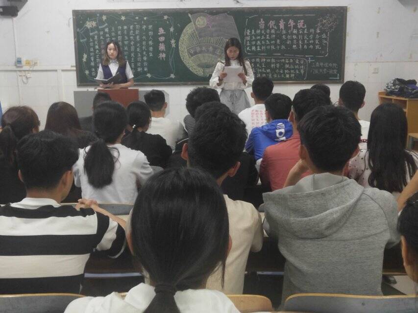 时值五四青年节到来之际,为了传承五四精神,激发爱国热情,贯彻习近平新时代中国特色社会主义思想和党的十九大精神。公司于5月3日在B楼特举办“新时代新青年——弘扬五四精神”主题团课。参加本次团课的有17级国际商商务一班、17级国际商务二班、17级连锁经营管理一班、17级连锁经营管理二班、17级工商管理一班、17级人力资源管理一班共300余人。