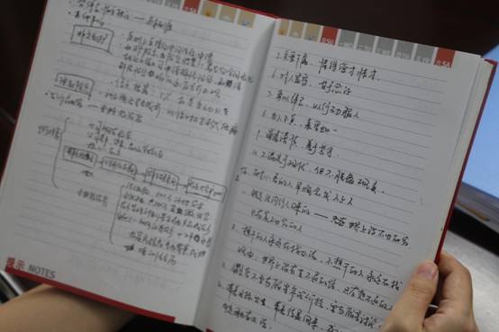 在参观中同学们还发现王学长热爱读书,并写下了十几本读书笔记,为同学们树立了认真读书记录笔记的好榜样。访谈结束后,王学长为同学们写下寄语:“全身心的投入,永不停止的努力”。同学们也表示要向王学长学习,不断努力,逐渐成为一名成功的企业家。
