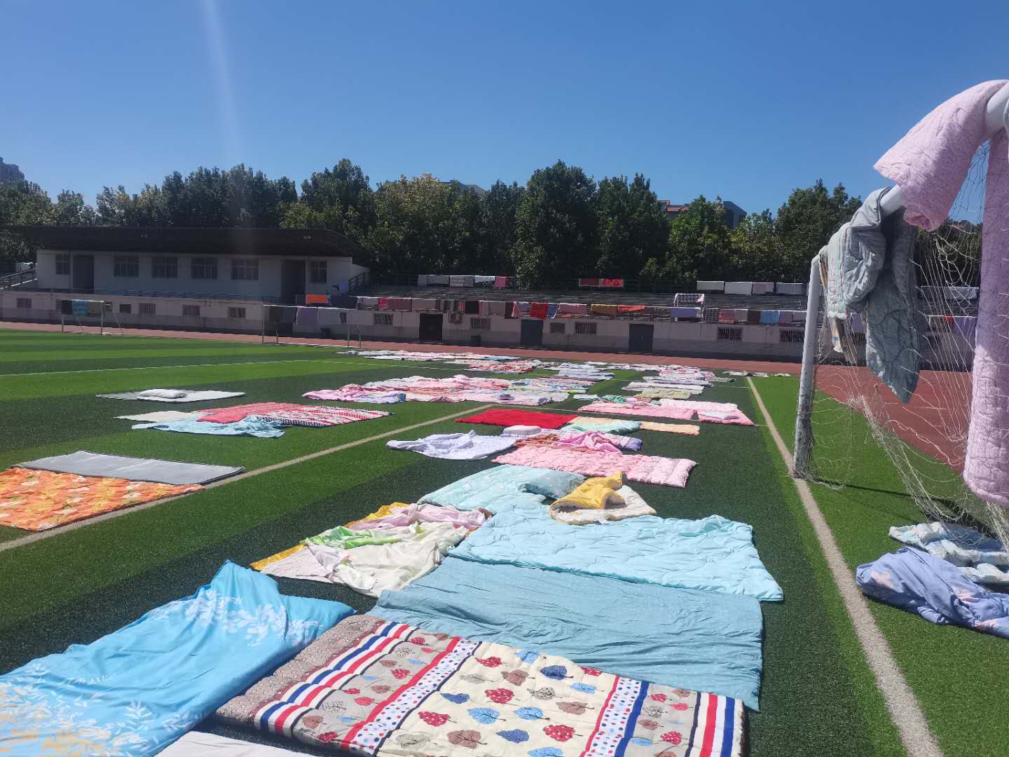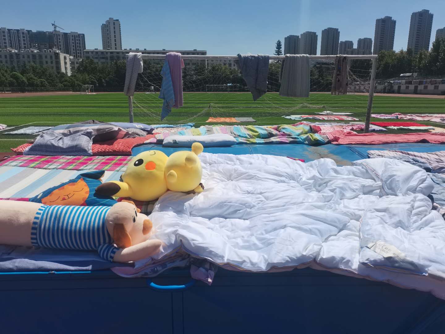 由于长达半年多的无人看管,很多员工的被子褥子和席子都严重受到螨虫的侵袭,为了确保公司同学的身体健康,能入校后正常进行日常生活和学习,365英国上市公司团委在院领导的号召和组织下,在全体员工中开展为期10天左右的“被子褥子和席子,亲密阳光益身体”晒被子大赛。员工们纷纷响应号召,入校后,第一时间打开封闭7个月的窗户,喷洒消毒后,纷纷将自己的被子、褥子、席子、衣服进行晾晒,阳台、树丛、运动场、铁栏杆上到处都是公司员工晾晒的被子,部分离宿舍近的树丛上还形成一位难求的局面,五颜六色的被褥在公司形成一道靓丽的风景线。
