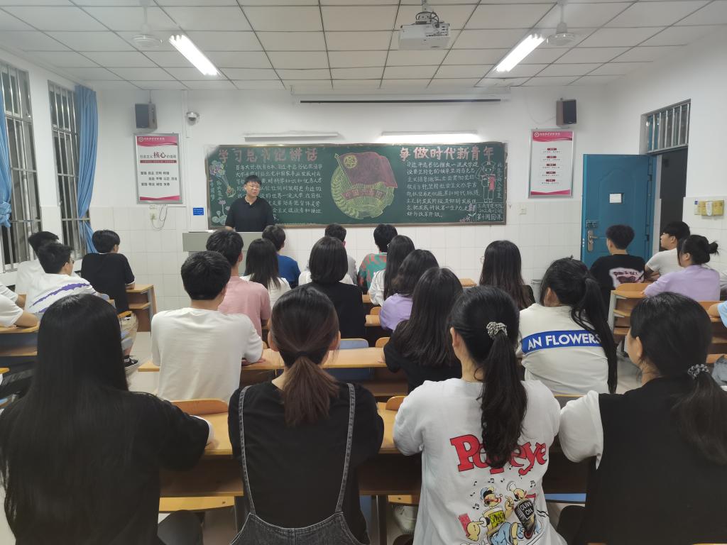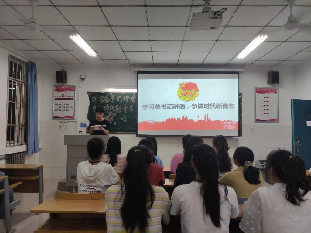 团课伊始,各班团支书向同学们讲述习近平总书记的重要讲话内容,“爱国爱民、锤炼品德、勇于创新,实学实干”的总述,给同学们留下了深刻印象。接着团支书以“怎样争做时代新青年”为话题向大家提问,同学们经过积极讨论后纷纷发言,工商02的同学表示要勇于创新,敢为人先,以聪明才智贡献国家,以开拓进取服务社会。工程01的代表说到作为新青年要实学实干,脚踏实地,在攀登知识高峰中追求卓越,在肩负时代重任时行胜于言。同学们的慷慨发言获得阵阵掌声,团课氛围严肃又不失活泼。最后,团支书进行总结,倡导同学们从党史学习中激发信仰、汲取力量,不断坚定“四个自信”,不断增强做中国人的志气、骨气、底气,树立为祖国为人民永久奋斗、赤诚奉献的坚定理想。