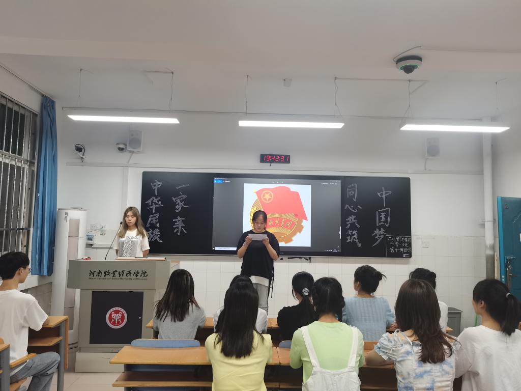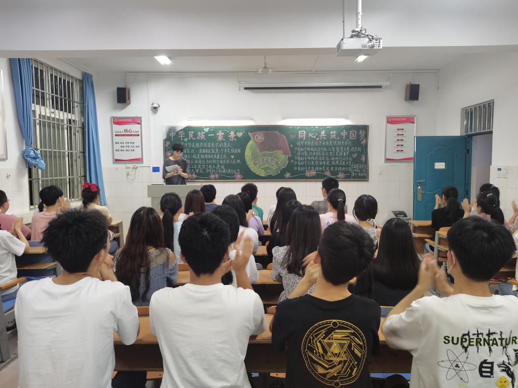 团课伊始,各班团支书组织同学们学习了中国特色社会主义民族团结政策,让同学们在熟悉国家民族政策的同时增强民族团结意识,激发员工们爱党,爱祖国,民族团结一家亲的情怀。之后,团支书向大家讲述了中华民族共同体意识是国家统一之基、民族团结之本、精神力量之魂,并以“怎样加强民族团结,共筑中国梦”为主题让同学们展开小组讨论。经过一番热烈的讨论,大家开始有序发言。20物业01的同学讲到我们要说有利于民族团结的话,做有利于民族团结的事,用自己的行动为民族团结事业添砖加瓦。20国商01的代表表示我们应该像爱护自己的眼睛一样爱护民族团结,像爱护自己的生命一样维护社会稳定,自觉做民族团结进步事业的建设者,促进者。代表们的发言获赞无数,团课在如潮般的掌声中接近尾声。