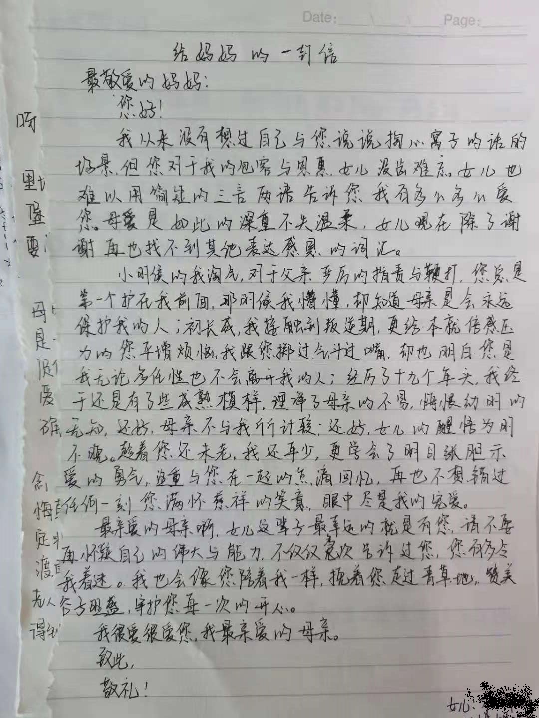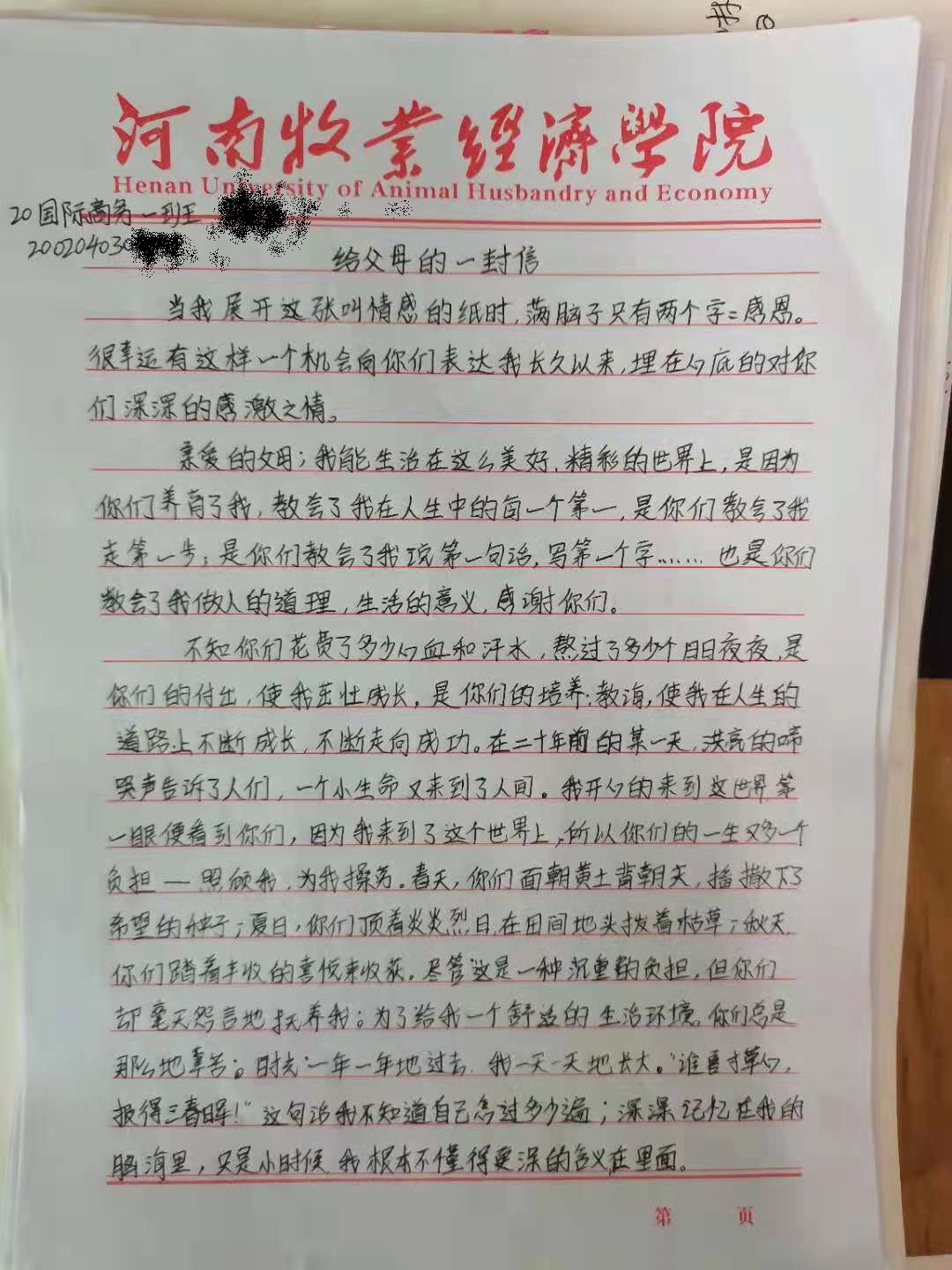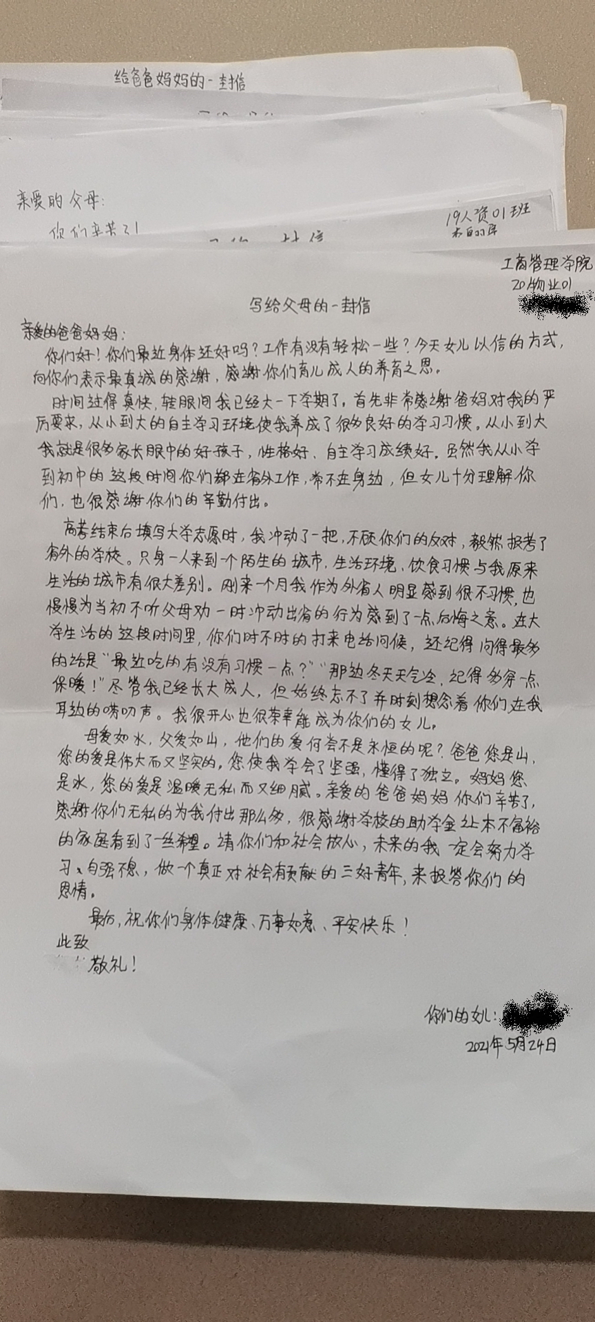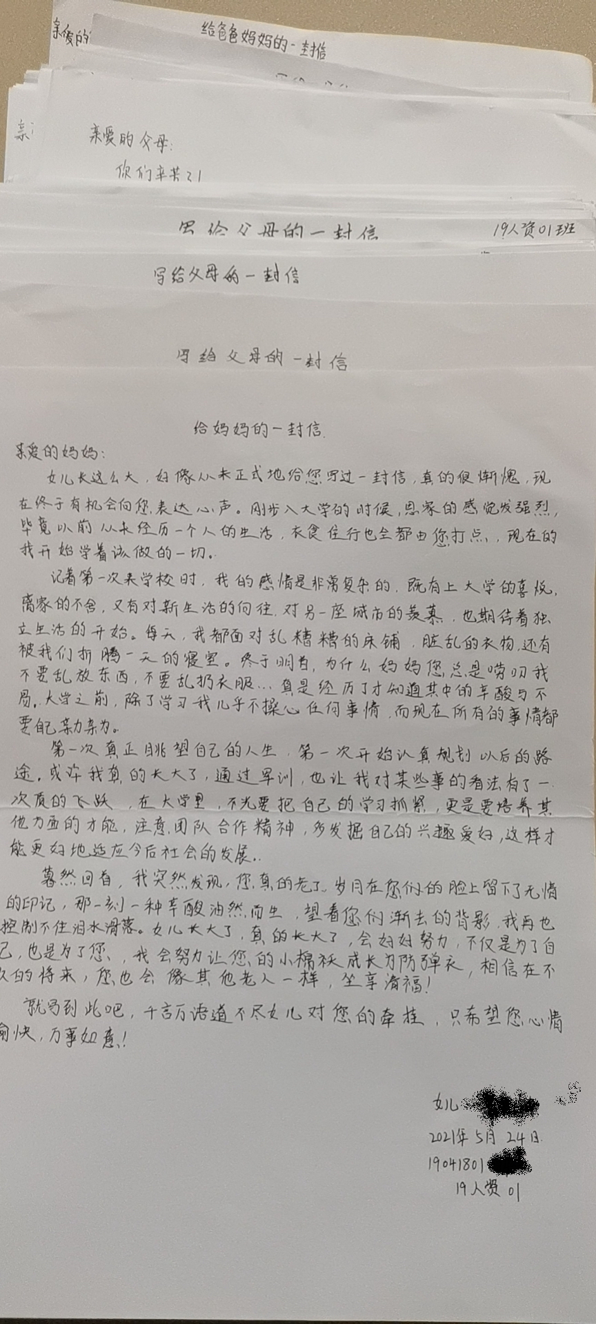 为了更好地对老员工进行感恩教育,让公司员工有感恩之心,尤其是对受到国家贫困资助的员工的感恩教育,在公司2021年5-6月心理健康教育月之际,公司在全院受国家资助的员工中发起感恩教育—“致父母的一封信”活动,让受资助的员工从感恩父母的辛劳开始,感恩祖国的资助,感恩老师的指导,感恩朋友的支持,感恩世界的美好,重塑健康心灵,用拼搏上进的心态,去努力学习,报效祖国。