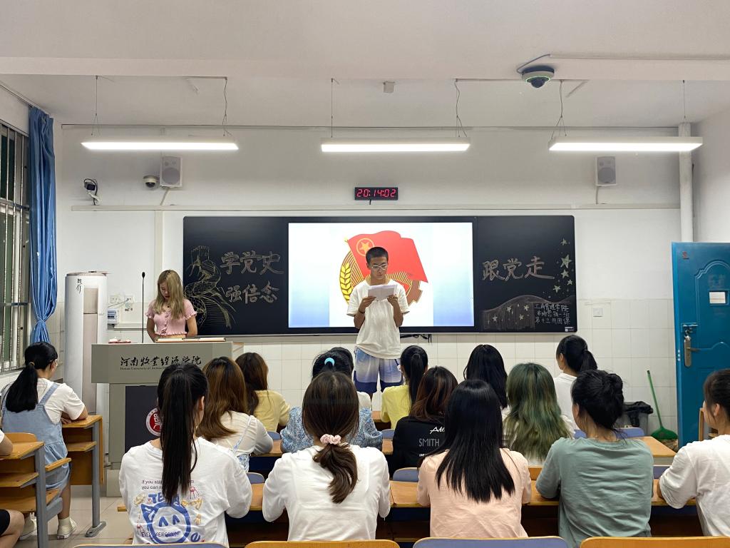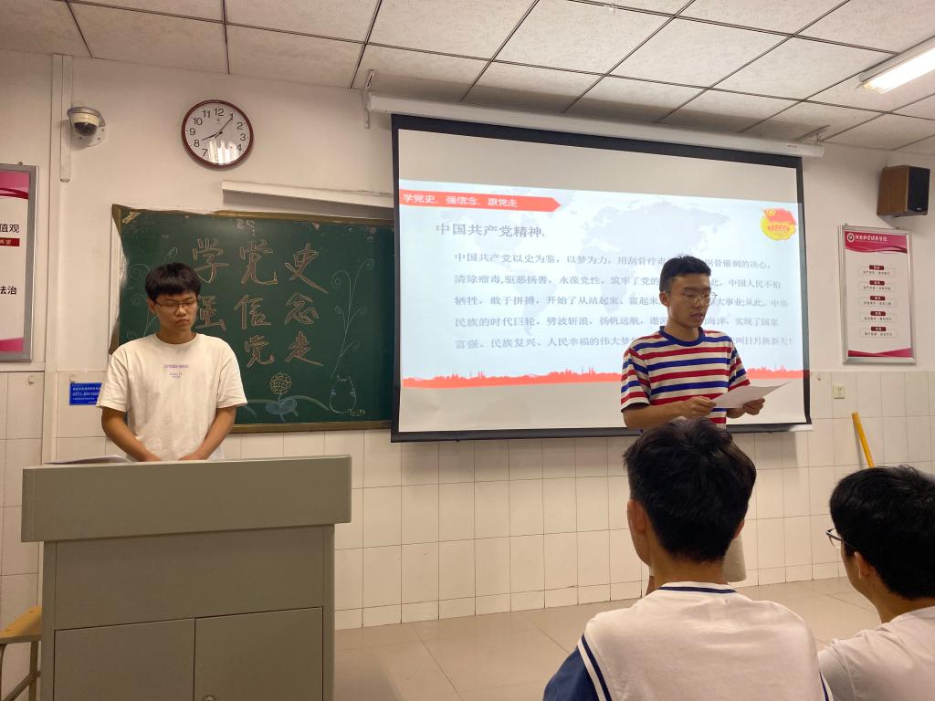 团课伊始,20级团支书向同学们简述了党的发展历程,团员们在党的苦难辉煌的历史中感受着党的伟大。紧接着,各班进行观看红色经典剧作、颂读红色经典故事等环节,使同学们深刻意识到学党史的重要意义,更加坚定了跟党走的红色信念。之后,团支书以“怎样坚定信念跟党走”为话题展开讨论环节,同学们经过激烈讨论后有序发言。20物业01团员代表的发言获赞无数,他表示我们青年团员要忠心于党,努力做好党的后备军,从学党史中汲取营养,从感党恩中汲取力量,从跟党走中坚定步伐,从增党光中创造佳绩!