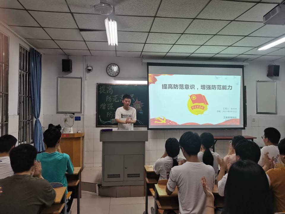 为提高同学们对电信诈骗的防范意识和应对能力,保护广老员工的人身财产安全,维护校园稳定、打造平安校园。公司于本周四晚开展“提高防范意识,增强防范能力”主题团课,参加本次团课的班级有20国商01、20国商02、20工商01、20工商02、20造价01。