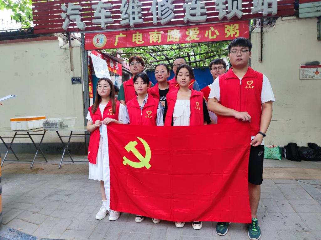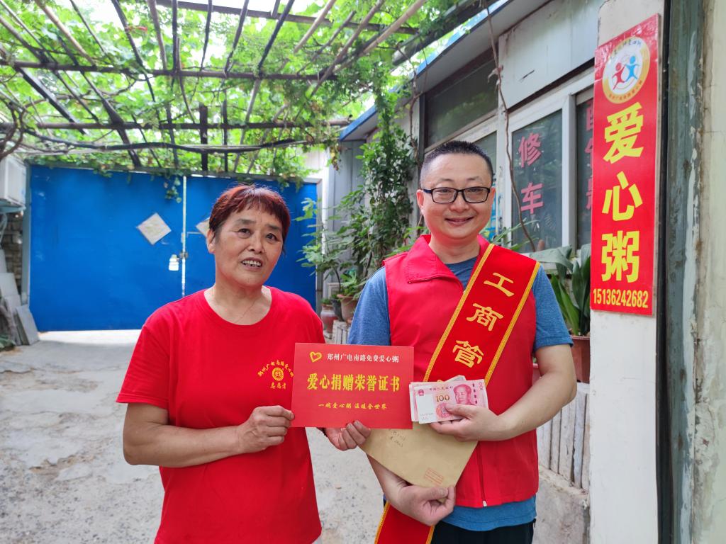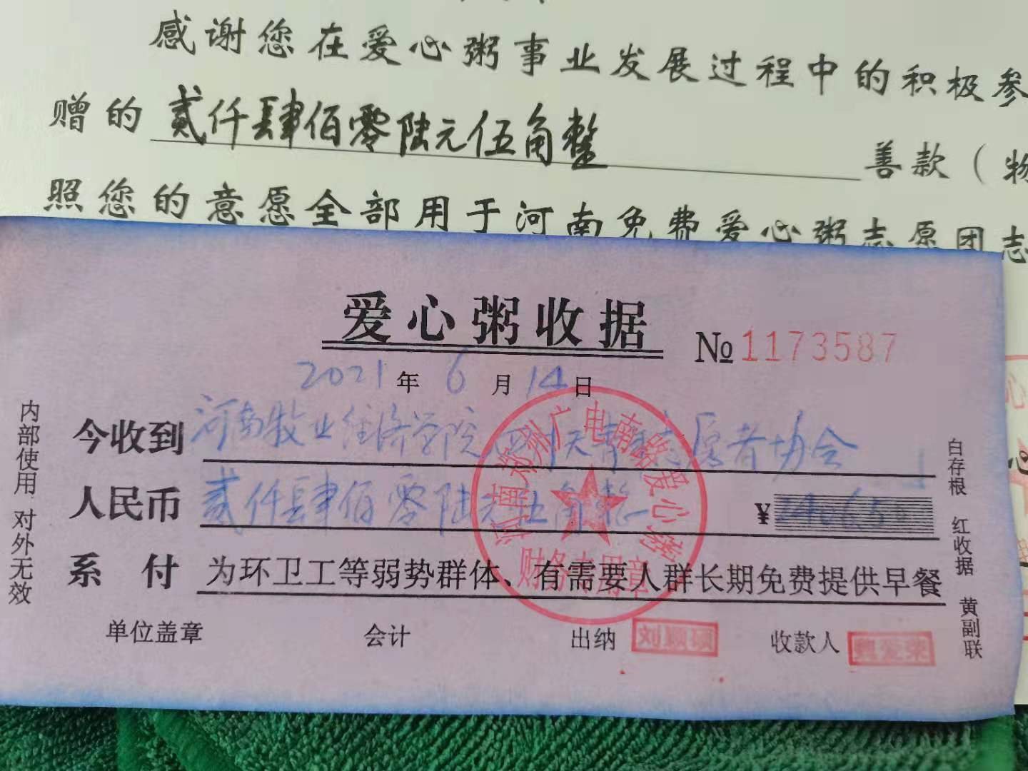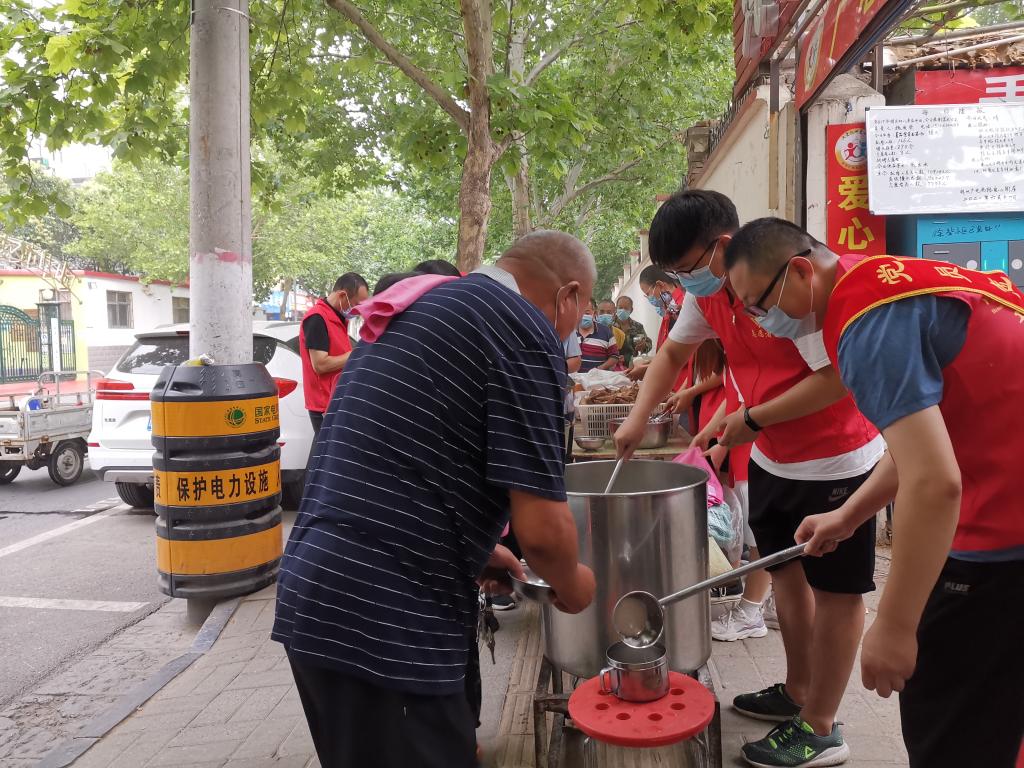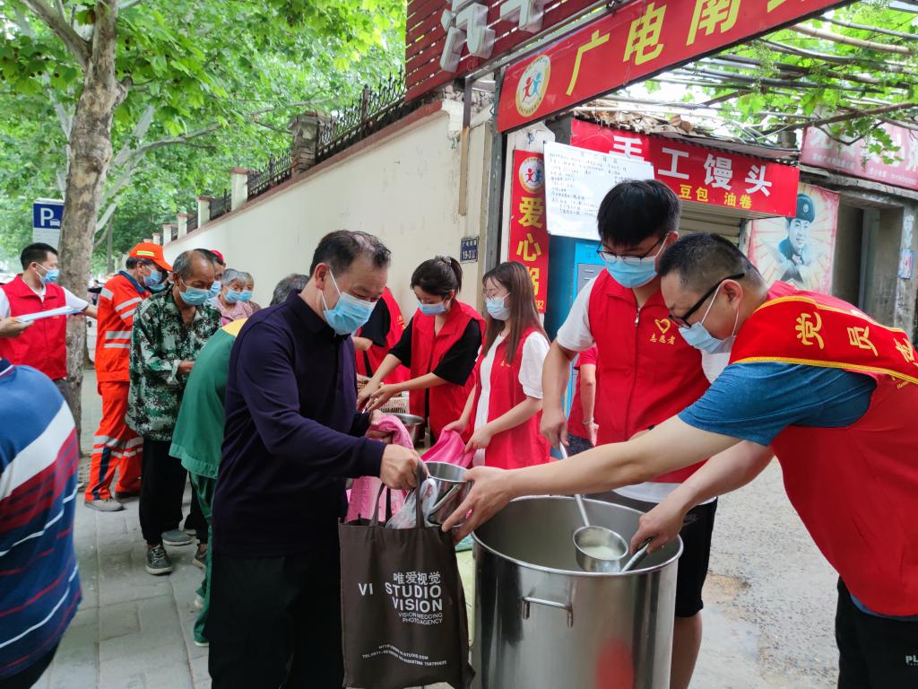 端午节之际,为传递爱心,进一步弘扬“奉献、友爱、互助、进步”的志愿者服务精神,响应党中央“党史学习”教育活动的号召,学党史、感党恩、真心实意为群众做实事,2021年6月14日,365英国上市公司四月天志愿者协会的志愿者们在团委书记詹珅老师的带领下,一行9人到郑州市广电南路爱心粥屋做义工,捐赠善款,奉献爱心。