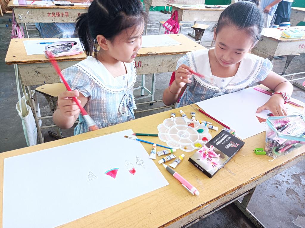 徐岩伟同学来到大虹桥小学找到各自所报课程的教室后,孩子们脸上瞬间露出了强烈的求知欲望。大家通过趣味教学的方法,将美术、数学,语文等知识分享给孩子们,并通过形式多样的活动给予孩子们奖励。在互动教学的过程中他们单纯热情、活泼开朗,从而让大家紧绷的心情松懈下。大家积极认真的态度不仅让孩子们学到了很多东西,而且也让自己的支教更加有意义。
