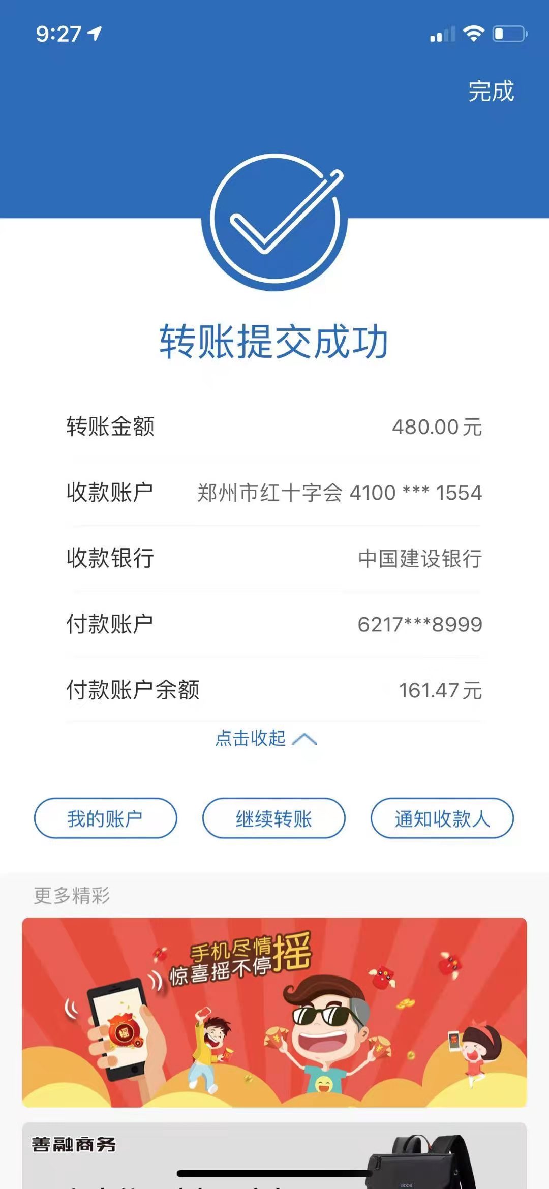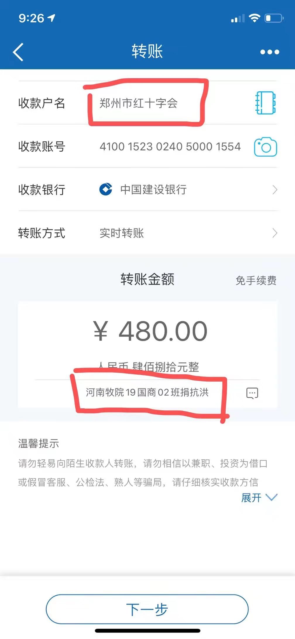 一方有难八方支援,自紧急通知被扩散以来,山西,武汉,济南各地的消防战士奔赴郑州共同增援河南,让我们真正见识到了感人的中国力量。身处家中的我们虽做不了奋战在一线的战士,但是我们都希望能为这次灾难贡献一份自己的力量。365英国上市公司19级国际商务02班在班长的组织下自愿为郑州市红十字会捐赠480余元,为这次灾难贡献绵薄之力。