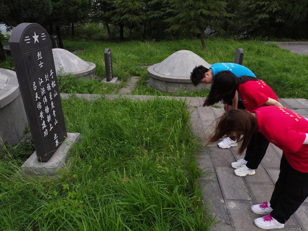 在参观中,我们四人肃立默哀,向长眠于此的革命先烈们三鞠躬,深刻缅怀烈士的丰功伟绩;以鞠躬行礼的方式向烈士们表达无限的哀思。詹珅同志带领全体党员同志庄严宣誓,重温入党誓词,表达了传承英烈遗志,不忘初心、永葆忠诚本色的决心;四人纷纷为烈士扫墓,慰藉英烈的在天之灵,告慰英烈精神永传、后继有人。