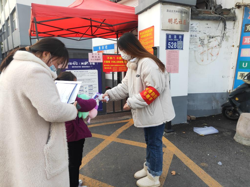 2022年新冠疫情的再次蔓延,河南省这次的形势也是非常严峻。1月3日,家住洛阳市洛龙区的20工程01王懿华在收到社区招聘志愿者后,立刻报名抗疫志愿者投身志愿服务。她每天早上7点不到就来到小区门口,不顾严寒的刺骨,耐心为所在的明花小区的出入居民进行来回测温,不惜辛苦地协助社区检查行程码健康码的工作,同时在以后的全员核工作中也会进行人员的信息录入工作。她用自己的辛勤付出,点亮防疫胜利的星星之火,用汗水诠释着青年老员工的责任与担当。