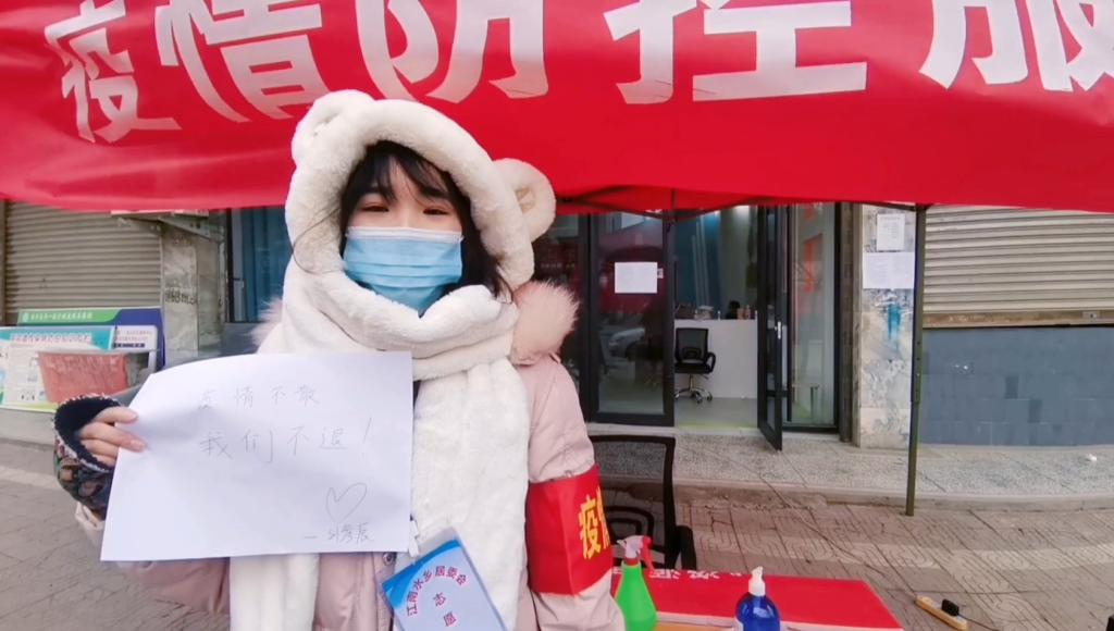 高雅同学作为一名抗疫志愿者,同时也是一名预备党员,在2021年寒假以来的此次疫情中,她同学便积极参加社区的抗疫志愿者活动,配合社区抗疫工作人员进行相关工作。