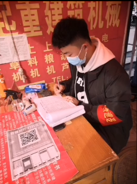 2022年1月3日,19国商01白宇同学作为一名预备党员,在院团委的号召和身边无数榜样力量的感染下主动报名参加小区的志愿服务,负责工作检查并登记进出人员信息、测量体温、宣传防疫知识,为社区出入人员登记出入证,填写值班登记表等。
