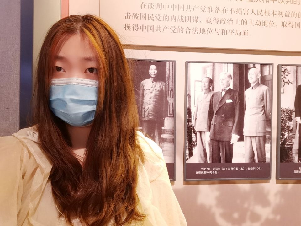 文化的力量最激励人心,2022年1月1日,家住重庆市的郭亚星同学兼职做重庆市红色历史博物馆的义务宣传员。每天带领游人参观周公馆,了解了以周恩来为首的中国共产党人八年如一日地艰苦战斗和生活,瞻仰周总理铜像再次让她感受到革命先烈的伟大与光辉。随后领队前往桂园讲解当年发生在这里关于重庆谈判“双十协定”的相关历史和主要成果,展馆里一幅幅老照片、一个个老物件,让游人身临其境般地触摸着历史发展的印记。接着再进入特园,介绍民革、民盟、民建、民进、农工党、致公党、九三学社、台盟等八个民主党派发展历史的展览。此次义务讲解,让她更深刻地了解了在抗日战争、国共合作时期,在中国共产党的领导下,团结各阶层爱国人士为取得抗日战争的胜利浴血奋战的英勇事迹。让她深刻领会到了党史学习教育的重大意义,使她更加明确了当代新青年的责任与担当。