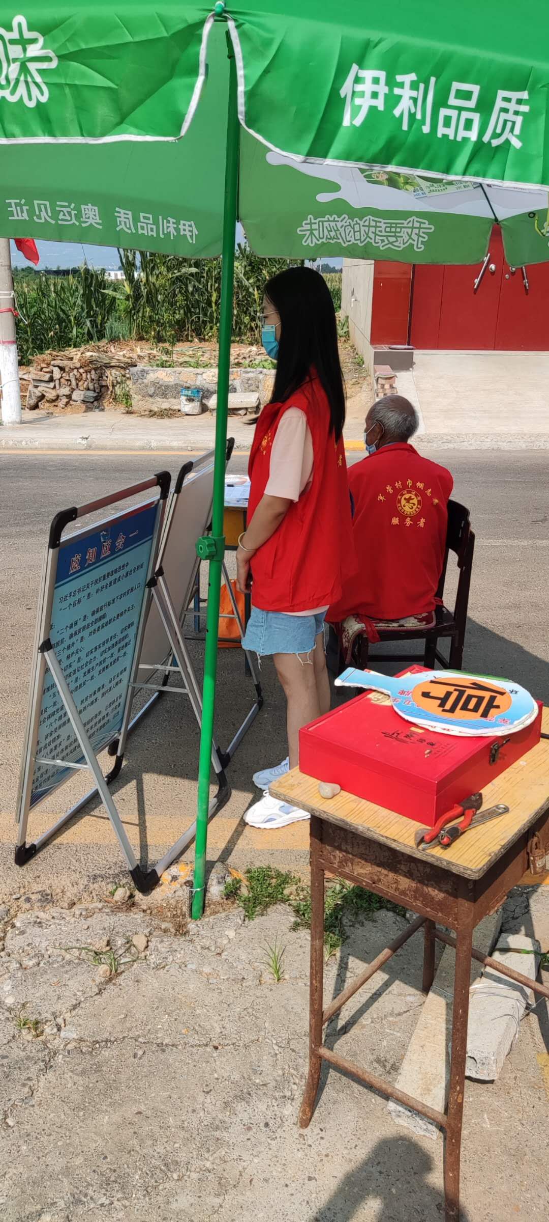在2020年暑期,作为一名老员工,我与弟弟报名了乡村抗击疫情老员工志愿者团队。每天早上我都会在村口值班,对进出人员进行测温、登记等健康检查工作。对外来车辆进行拦截,劝返,为我们村的抗击疫情工作做好保障。
