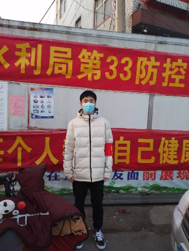 2022年,河南省爆发了疫情,疫情是我们共同的敌人,没有哪个地方、没有谁能置身事外。1月5日,已经返乡的19工程01李静同学,第一时间向村里报名提出申请做一名志愿者,帮助村里边尽快地完成路口体温检测,保证村里安全,从而更好地保证大家的安全 。在疫情防护工作中,他负责体温检测。通过二十多天的志愿活动,她感觉收获很大,认识到了疫情防控中温度检测是一个重要屏障,与此同时,也因为自己的家乡贡献一份力量而感到非常的自豪。虽然在外面很冷,但是疫情无情人有情。在需要之时她挑起担子,用自己的实际行动去践行了时代的责任与担当,传递了人间温暖。