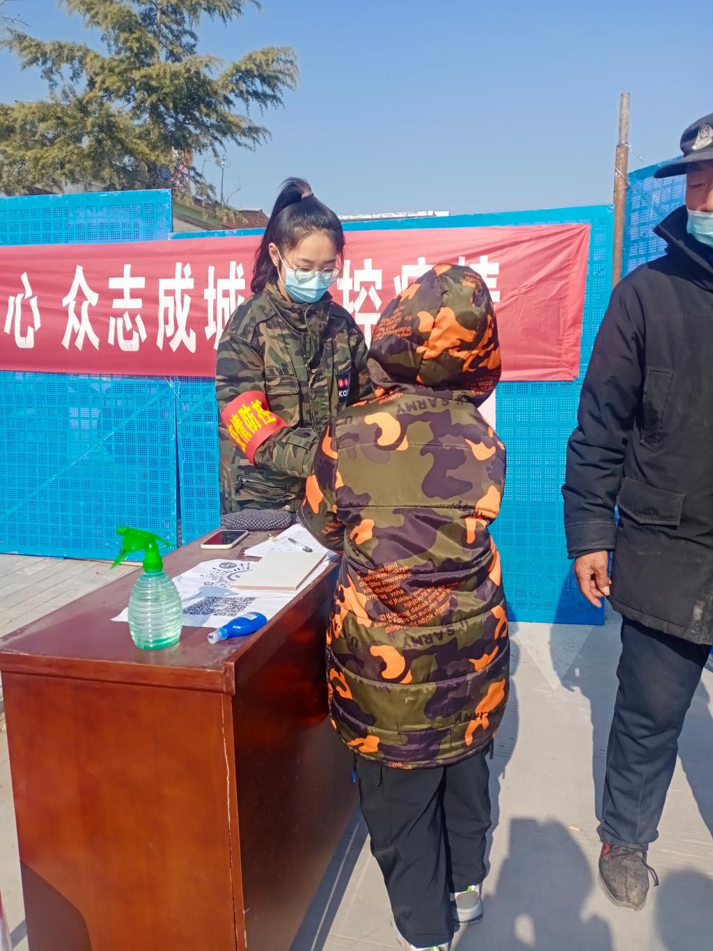 我是19工程01班的崔文豪,来自周口郸城,从1月7日以来,看到郸城洺北街道胡庄社区发布的志愿者招募通知,我就积极响应社区的通知,开始加入到社区的志愿者服务活动中来,期间进行我们进行了一次全员核酸检测,提前一天就去布置采集点,第二天早上六点多就在检测点集合 在社区干部的指导下,维持核酸采集点秩序,帮助来做核酸的群众进行扫码登记,协助医护人员对人们进行分组,其余时间,在卡点做日常防疫工作。二十天过去了,虽然寒冷且辛苦,但是我们没有一个人喊累,我们坚信,疫情终将过去,疫情不散,我们不退。