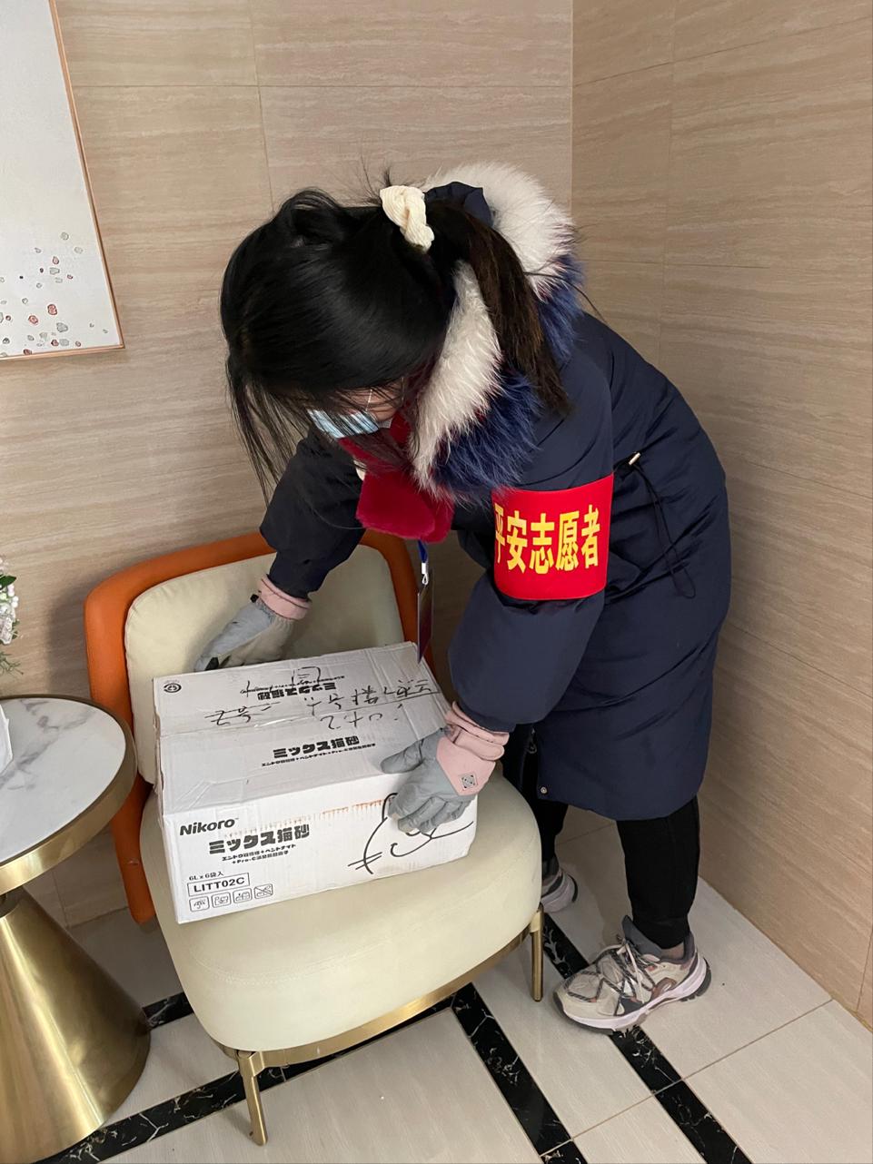 2022年1月3日,郑州市新冠肺炎疫情防控指挥部办公室发布2022年1号通告。1月8日,她下楼做核酸检测,看到党员先锋队的身影,立即上前询问:“我是党员,可以参加志愿者服务吗?”得到肯定的答复后,她便立即报名加入到平安志愿者的抗疫队伍中。她早晨协助物业人员进行各项核酸检测的准备工作,如桌椅整理、场地消毒以及处理棉棒等事项,上午和下午进行物资搬运,将卡点运送的物资从园区门口送到各个单元楼下,并协助物业人员通知业主及时取走。她用实际行动传递出抗疫的坚定信念,彰显出党员的先锋模范作用,始终做到全心全意为人民服务。