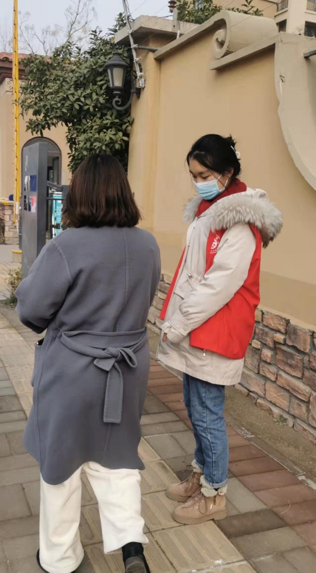 1月8日,苏梦第一天参与在河南省郑州市惠济区绿源社区的疫情防控活动,就看到每天早晨天蒙蒙亮,志愿者们就开始为当天的核酸检测工作做准备,在正式开始检测后,志愿者们展开有条不紊的健康码查验和扫码登记工作。苏梦测温岗位上“滴”了六七个小时,真真地理解到了什么叫“手指不可屈伸”。看来是小瞧了郑州的寒冷天气,回到家中便感觉身体不适,只好休整一天后再投身疫情防控之中。后来20天的志愿活动,她一天比一天辛苦,后续参与扫码登记及维持秩序工作。大家都相信没有过不去的冬天,没有战胜不了的疫情。我们一定可以过一个平安幸福年!