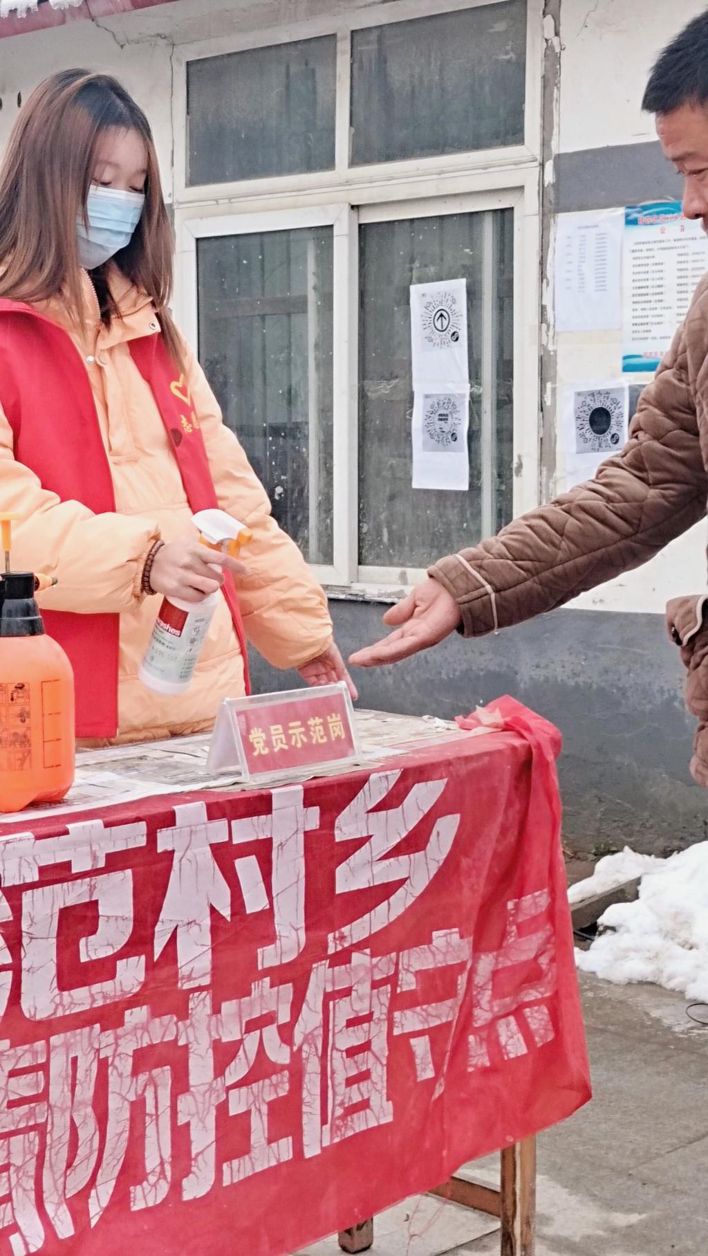目前,疫情防控形势依然严峻复杂,做好防控工作刻不容缓。医疗工作者冲锋在前、广大党员干部勇挑重担,正在形成群防群治的强大合力。1月9日,在她和街坊邻居聊天时,突然广播里响起了通知,招聘疫情防控志愿者,作为一名老员工,她立即报名参与了志愿活动,虽然条件艰苦,天气也不是如人所意,但是心中有信念支撑着志愿者们,再冷的天气,心中也有一团火温暖着她,不惧困难,勇往直前,在志愿过程中,她给过往的汽车,村民都进行了消毒,并出示了行程码,健康码。相信只要坚持到底,疫情终将过去,迎接我们的将是胜利的曙光。中国加油!